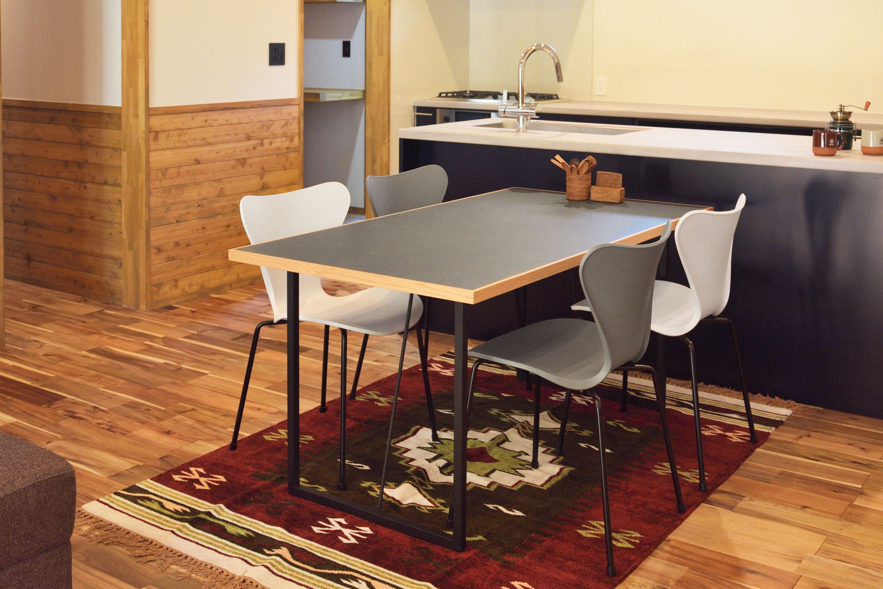 ROOMESSENCEのキリムラグです。踏み心地の良い質感を備え、季節の模様替えにも活躍します。ブランドの美意識を感じる佇まいで、日常づかいから来客時まで幅広く対応。品番:TTR-107E。暮らしに上質なアクセントを添える一品です。