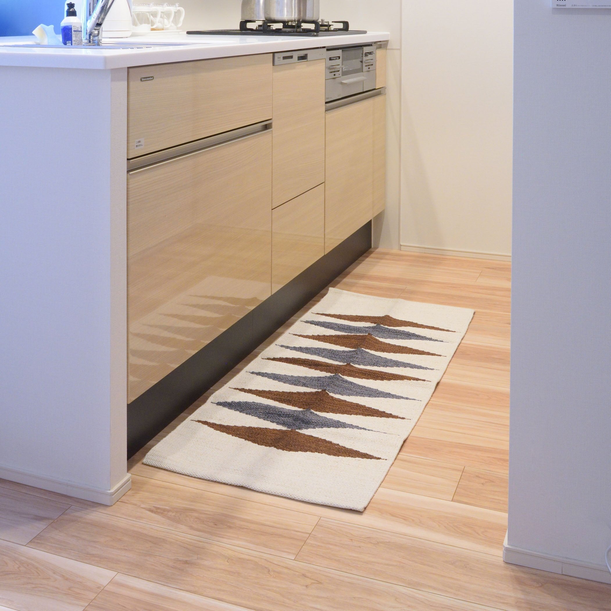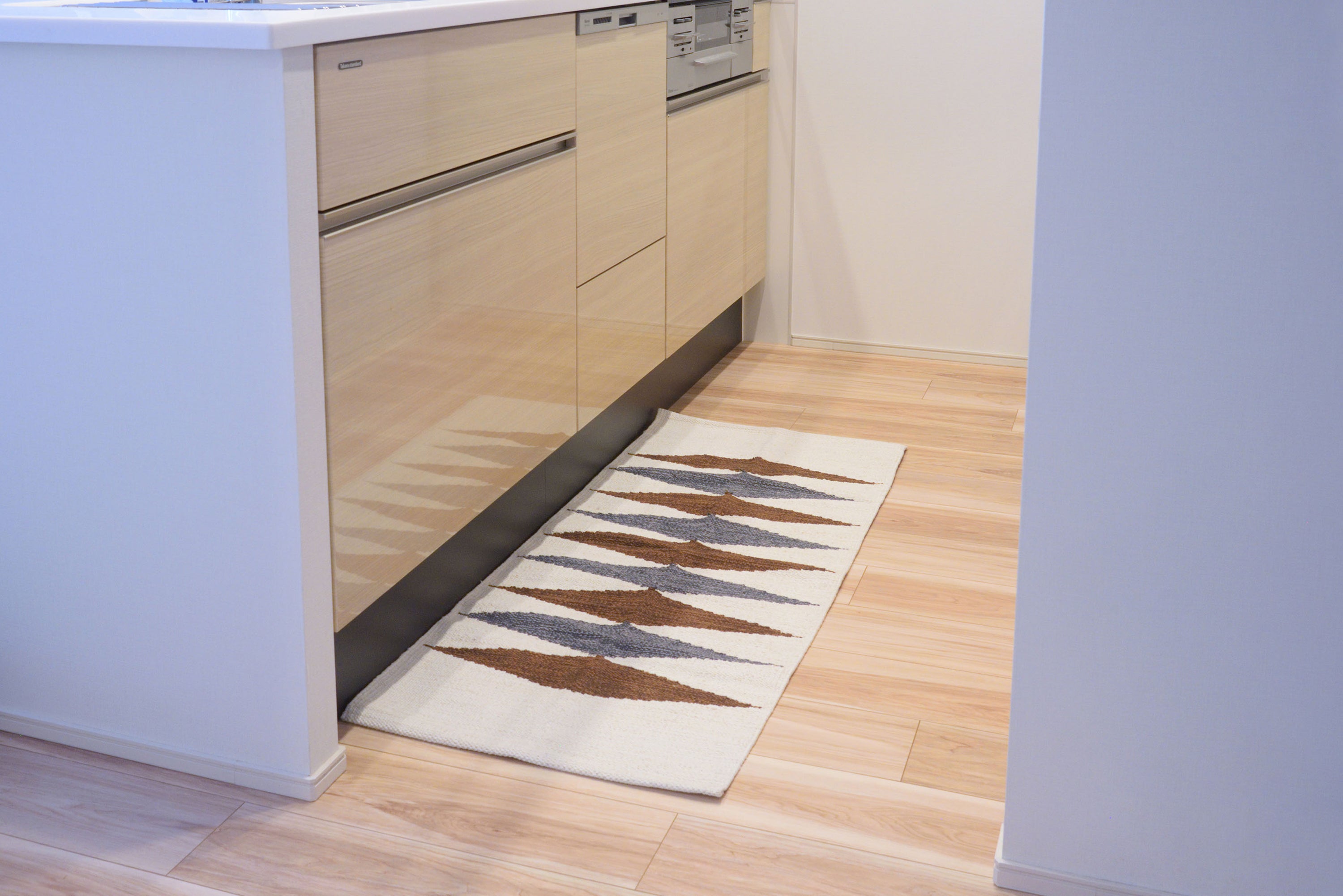 4つのサイズ展開でさまざまな広さに対応するキッチンマット。 天然コットン100%で季節を問わず快適な使い心地です。