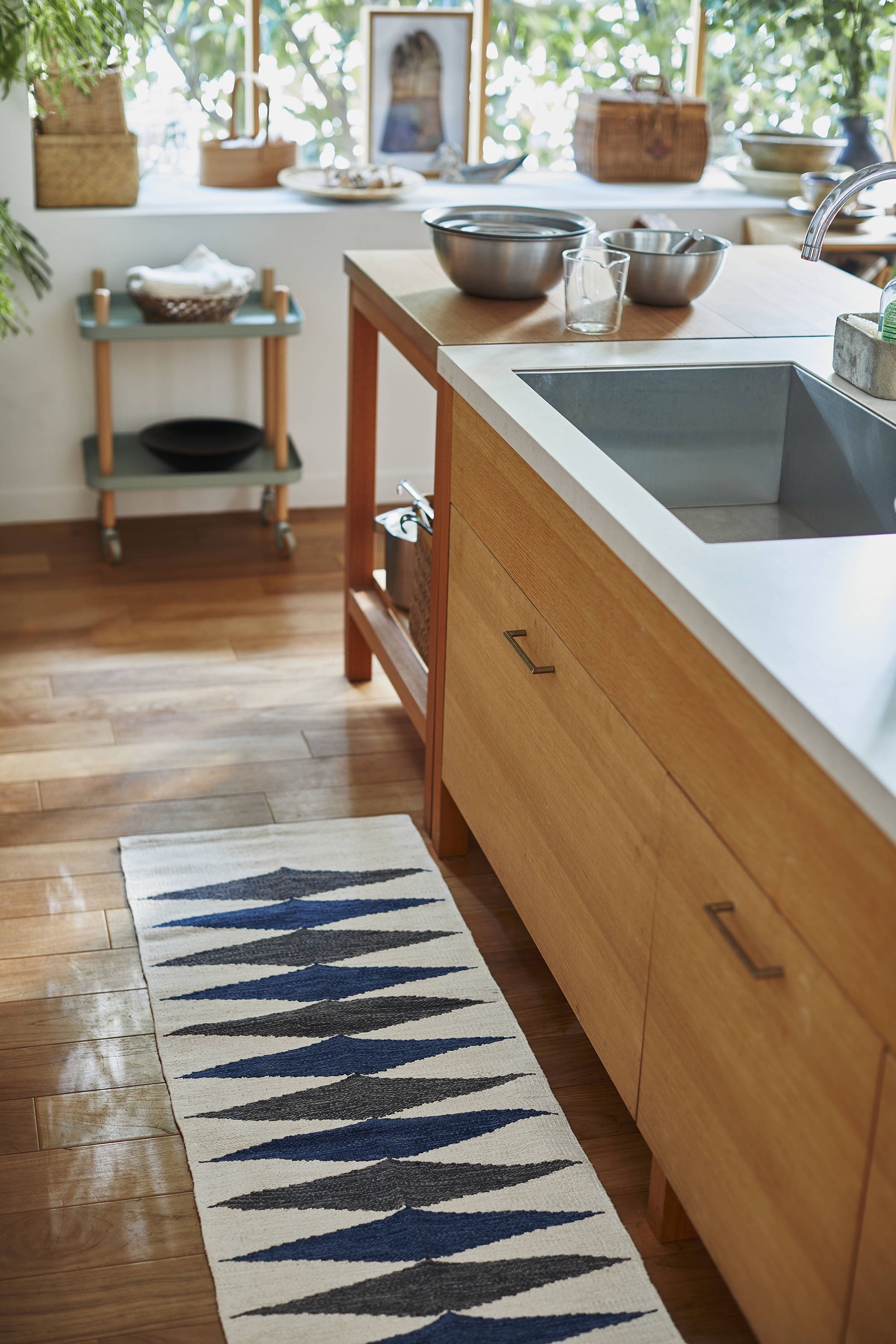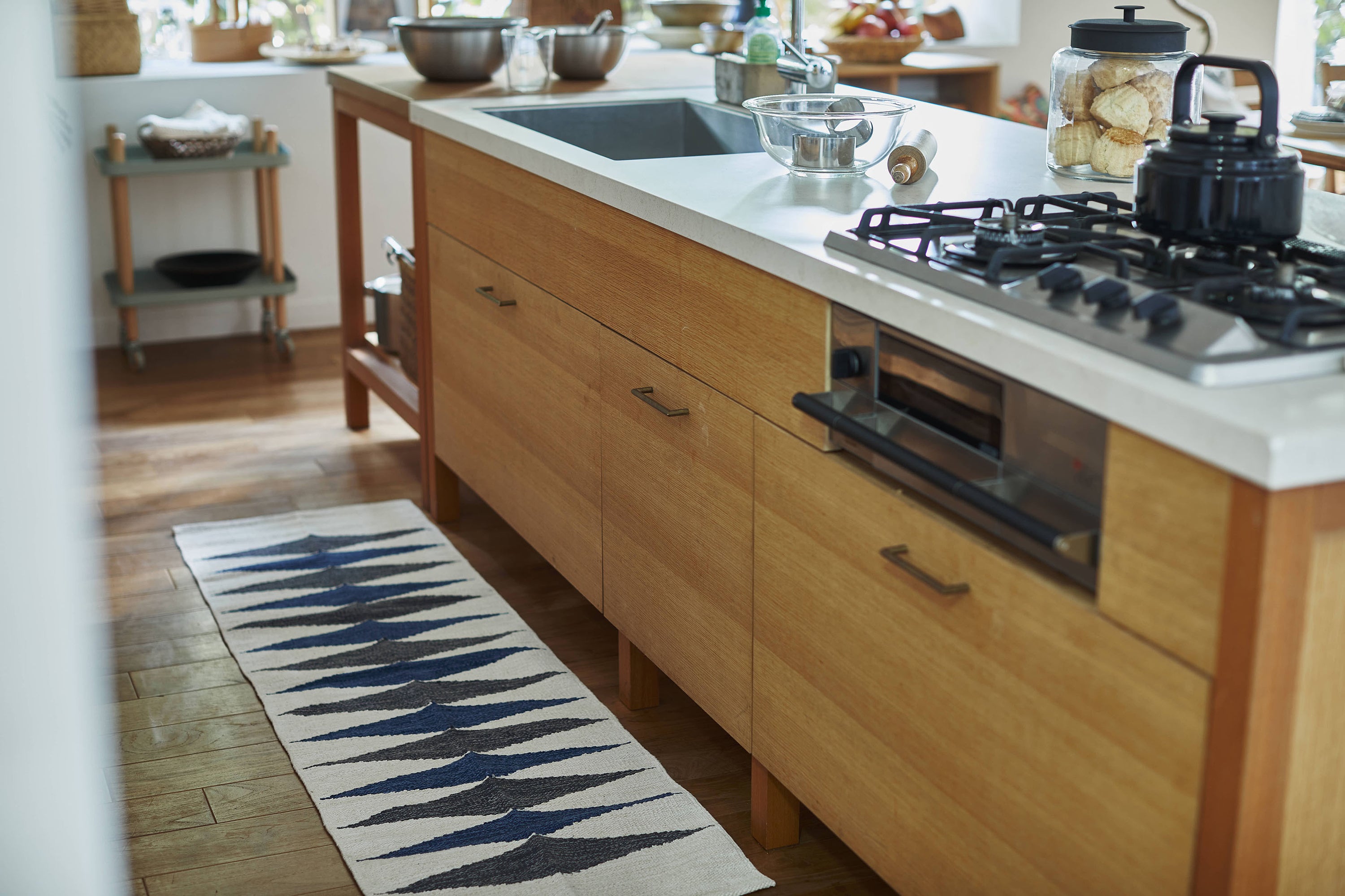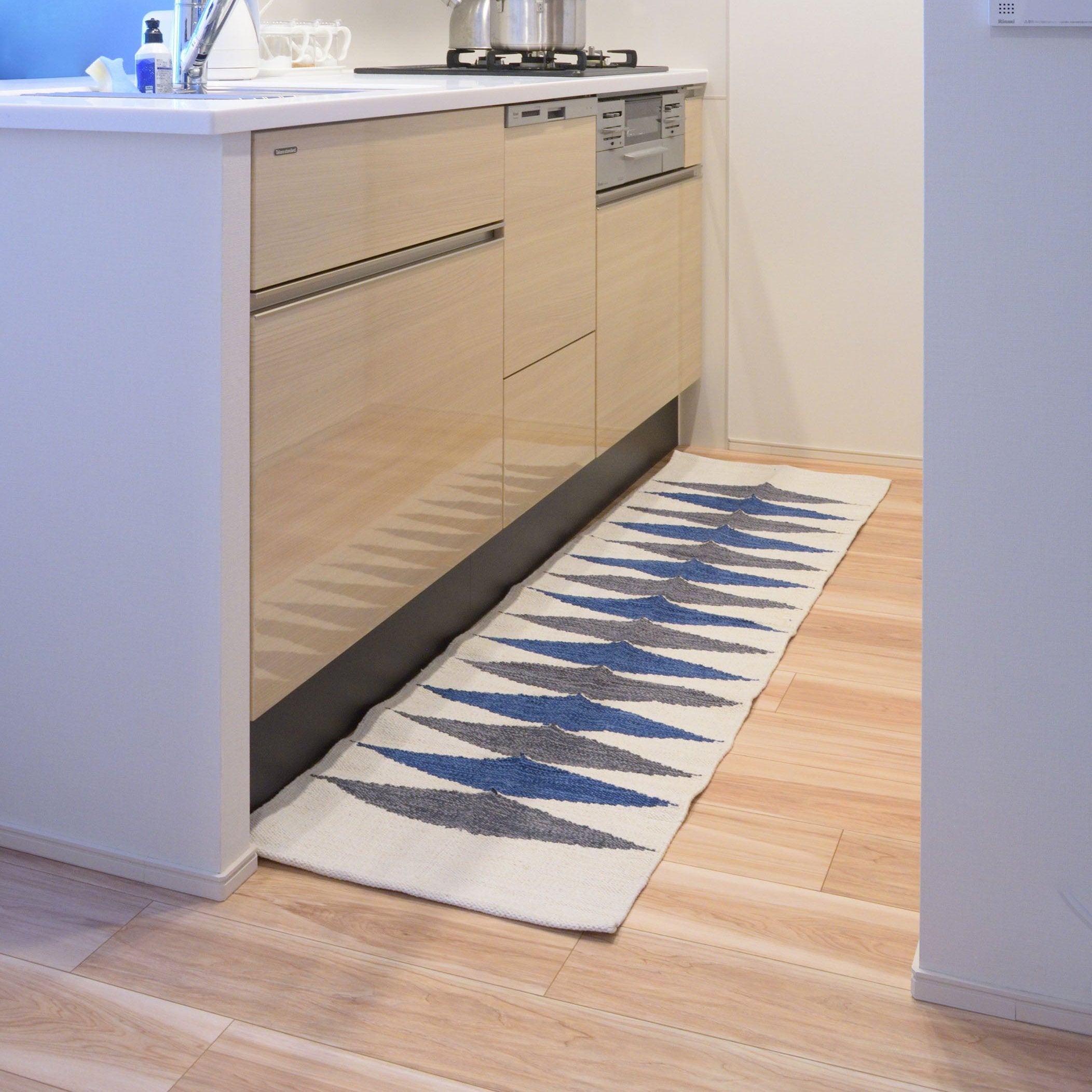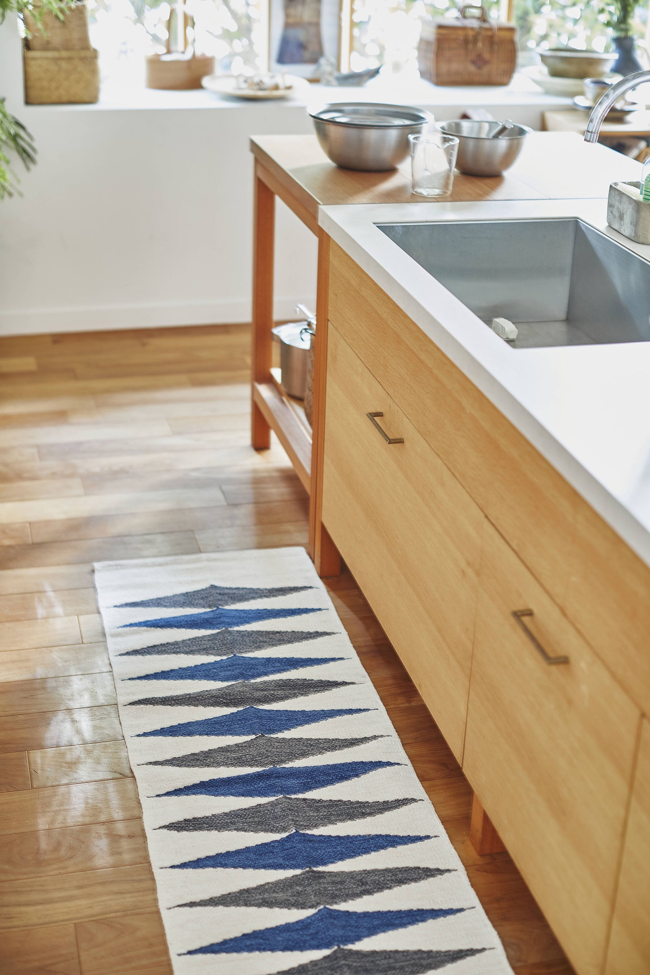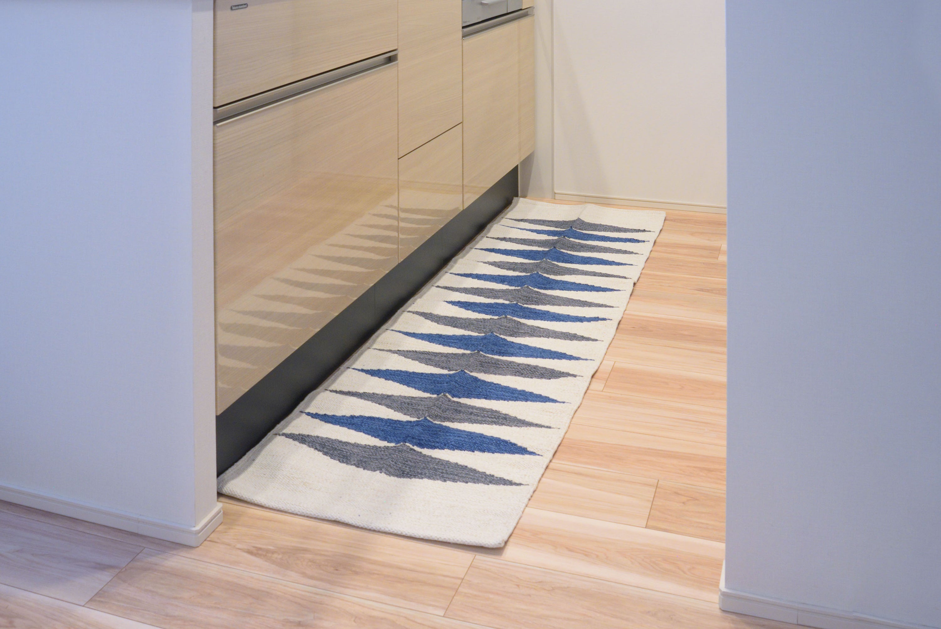 4つのサイズ展開でさまざまな広さに対応するキッチンマット。 天然コットン100%で季節を問わず快適な使い心地です。