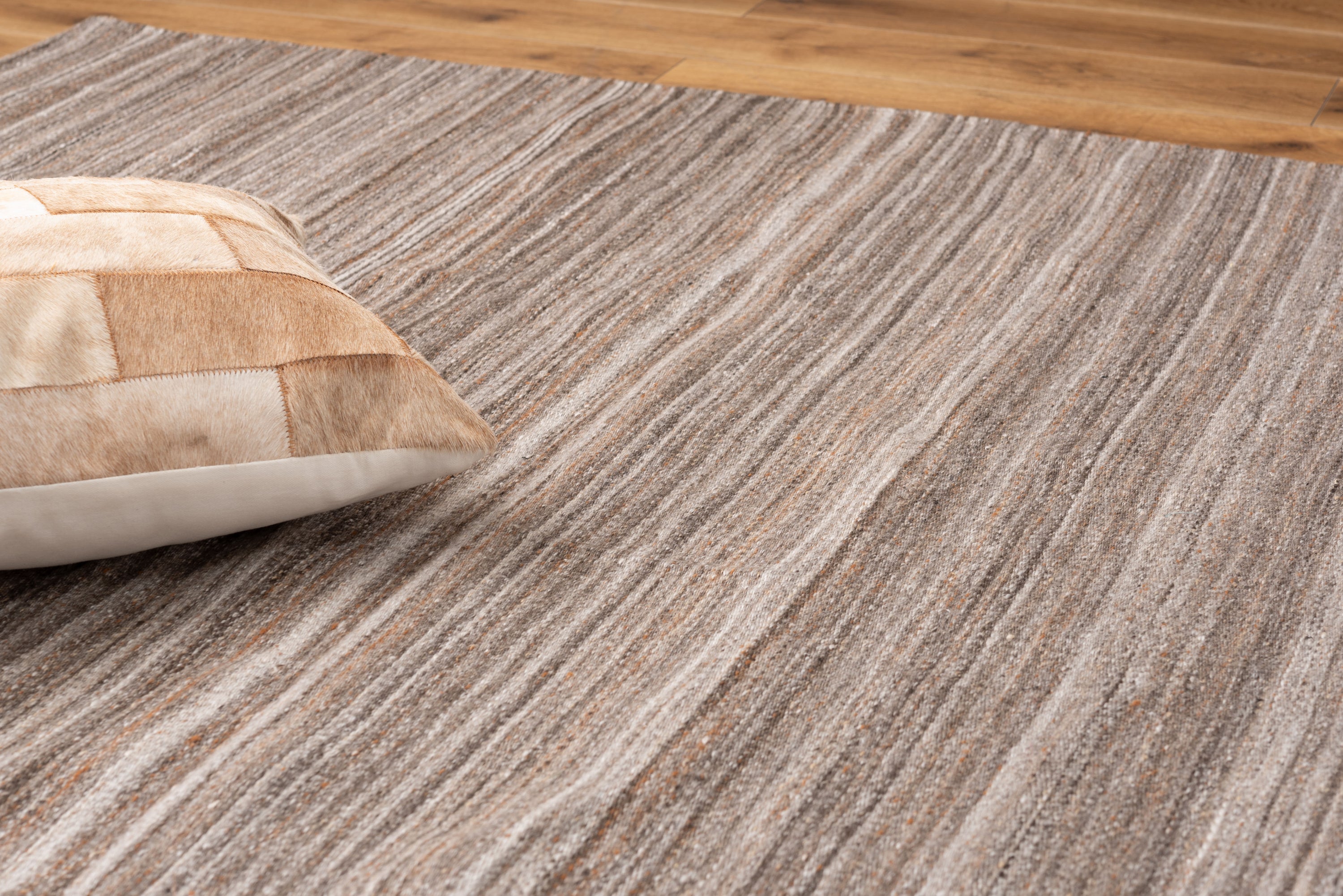 手織りで1点ずつ作られた、混色の風合いが美しいラグ。 多数の色が使われている事で、近くで見る印象と、お部屋全体で見る印象の違いも楽しめます。 フリンジやタッセルなどの装飾は省いたシンプルなデザインなので、どんなテイストにも馴染む使いやすいアイテムです。