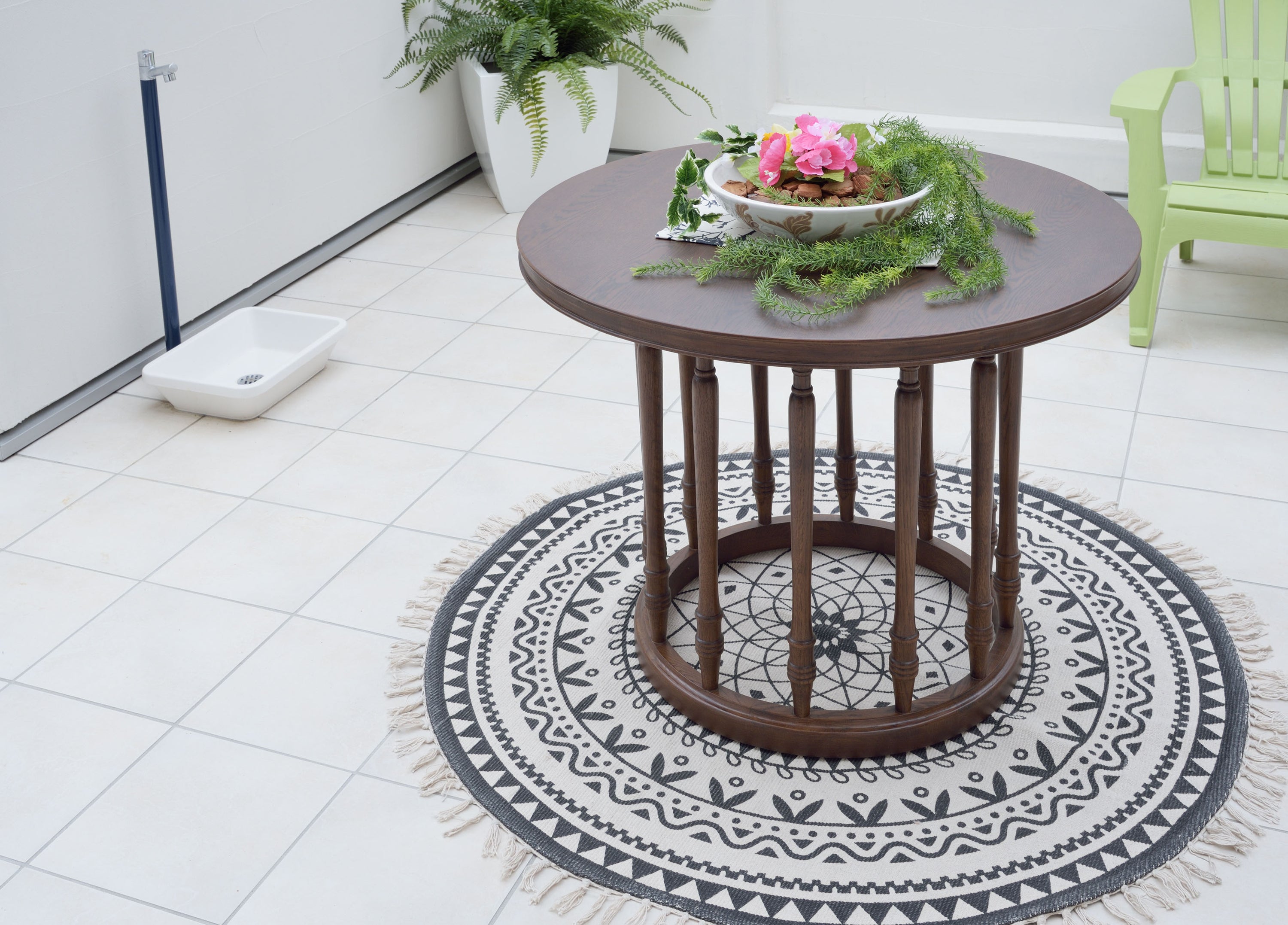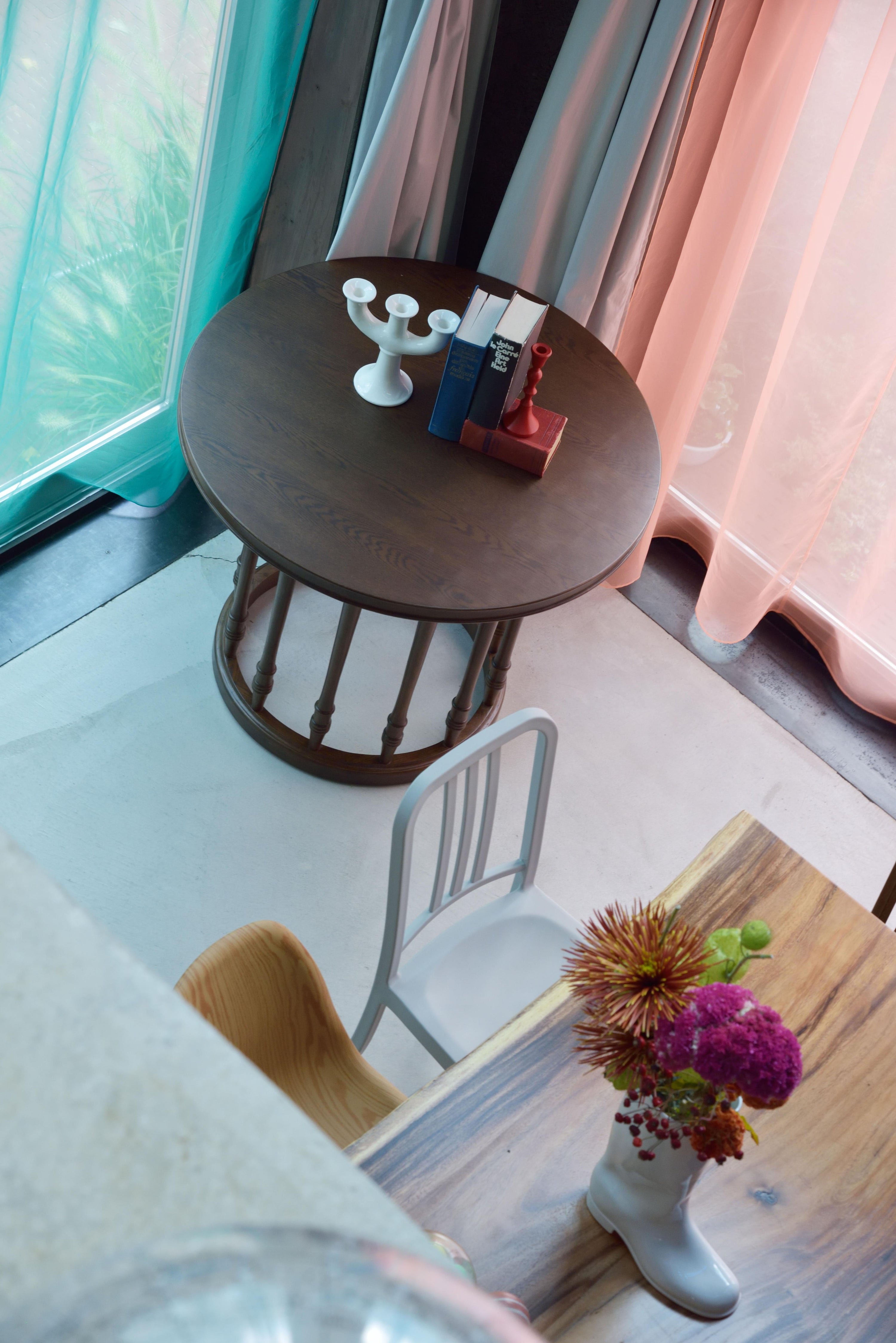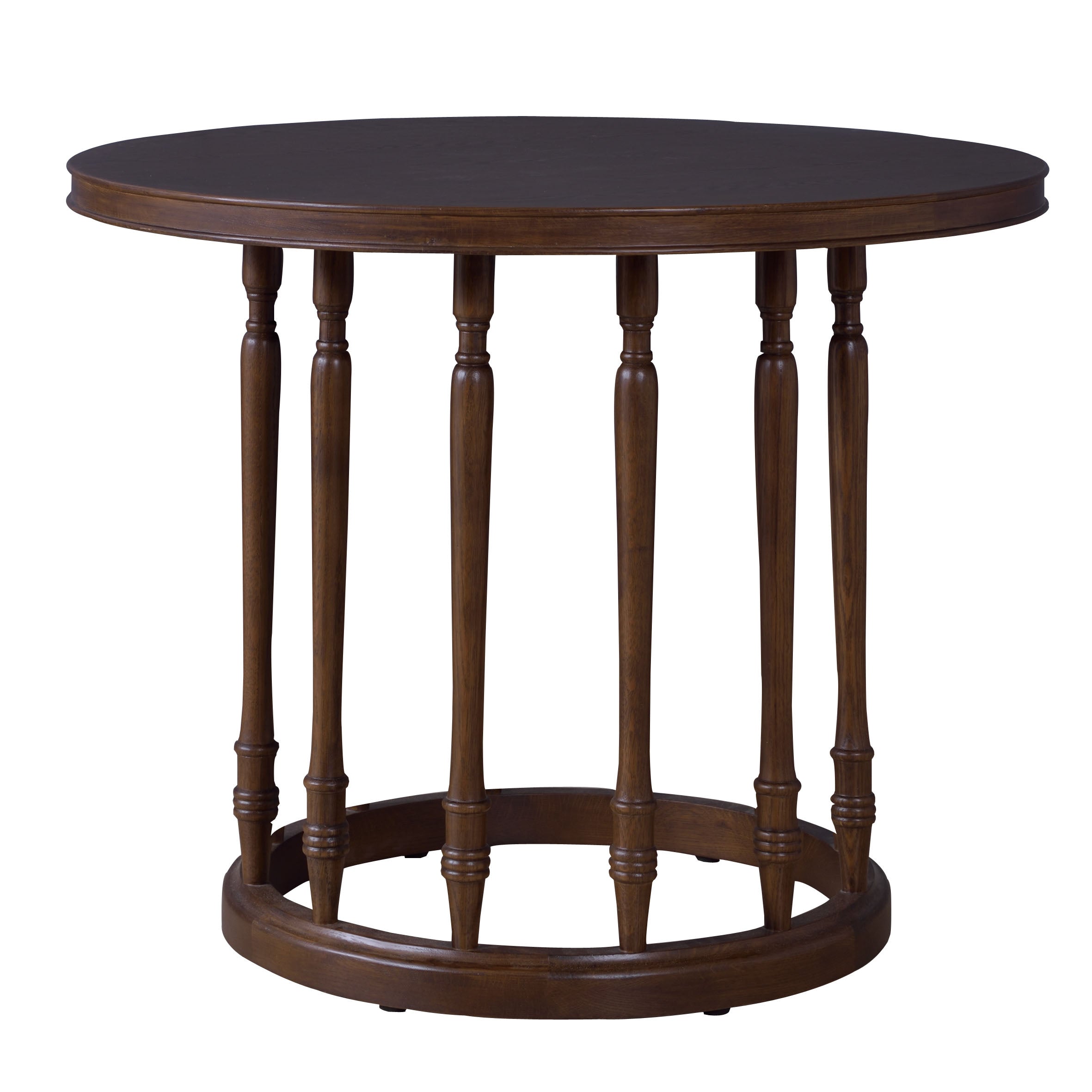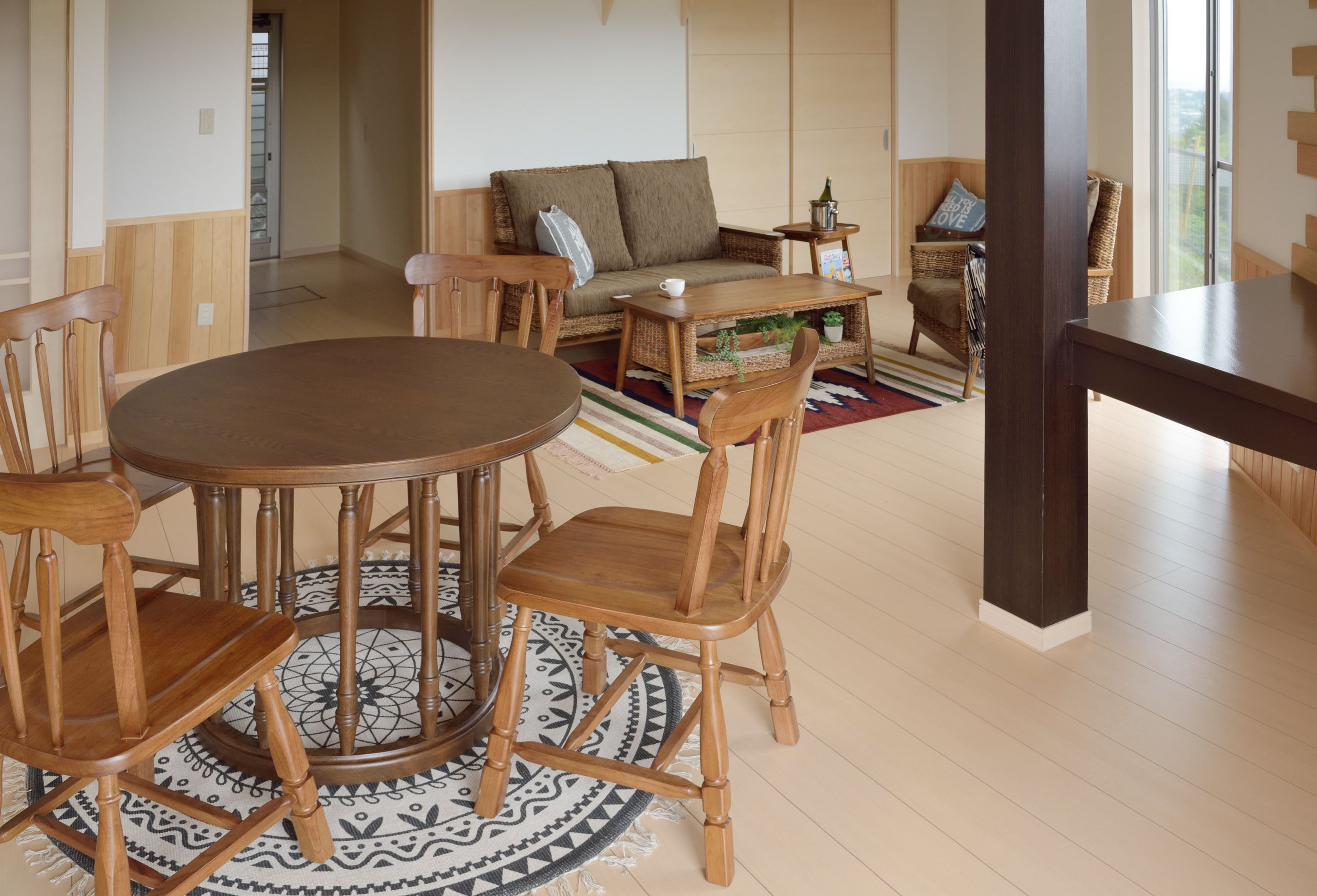 カタチを活かした空間づくり。 ホテルやオフィスの花台として使用するのはもちろん、ご家庭内でダイニングテーブルとしても ご使用いただけます。天板のエッジや装飾彫りが施された脚部が上品な印象を与え、 また、円形にすることでスペースを最小限に抑え、空間を広く見せたい場所に最適です。 天然木を落ち着いたブラウン色で塗装し、暖かみが感じられるテーブルに仕上げました。