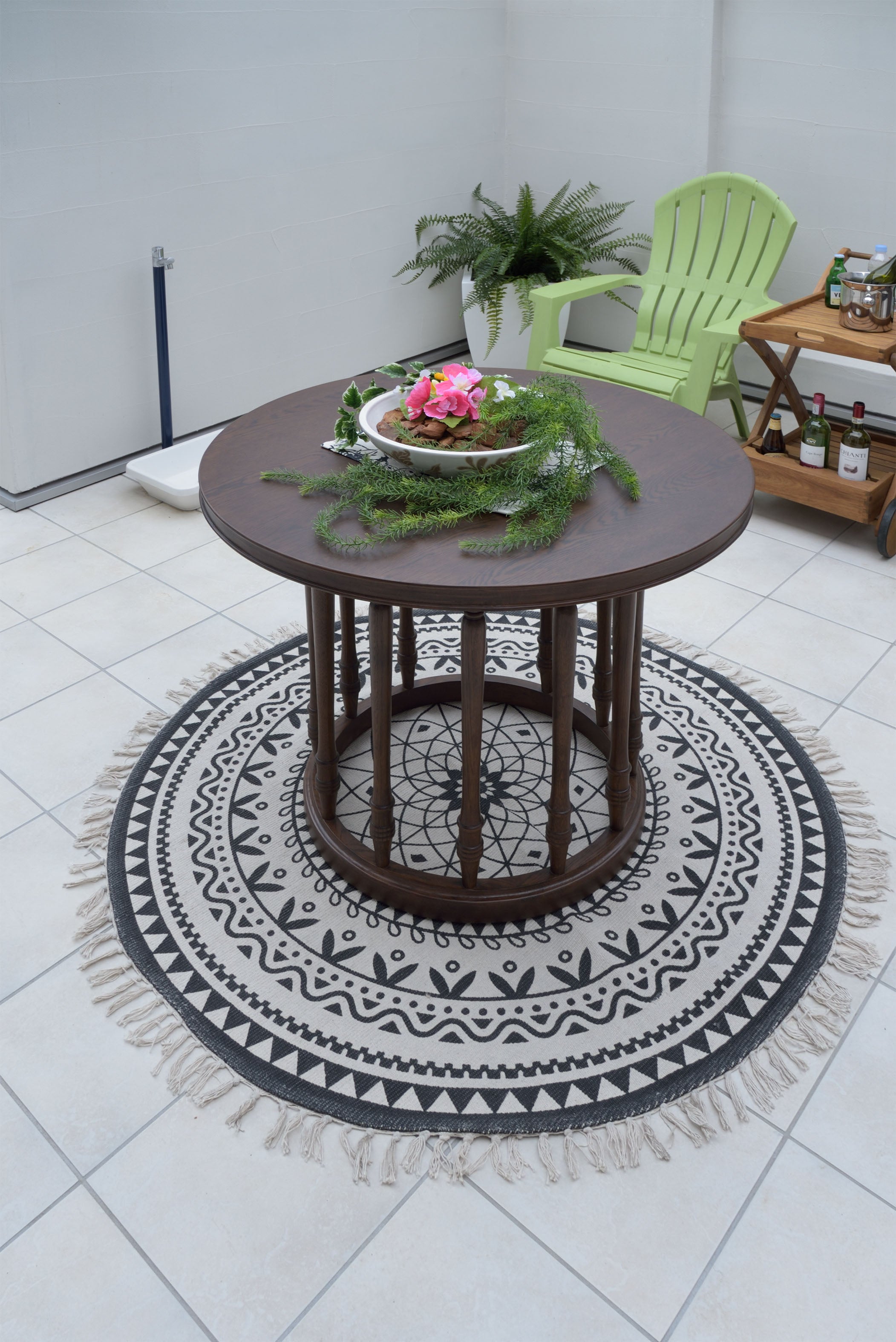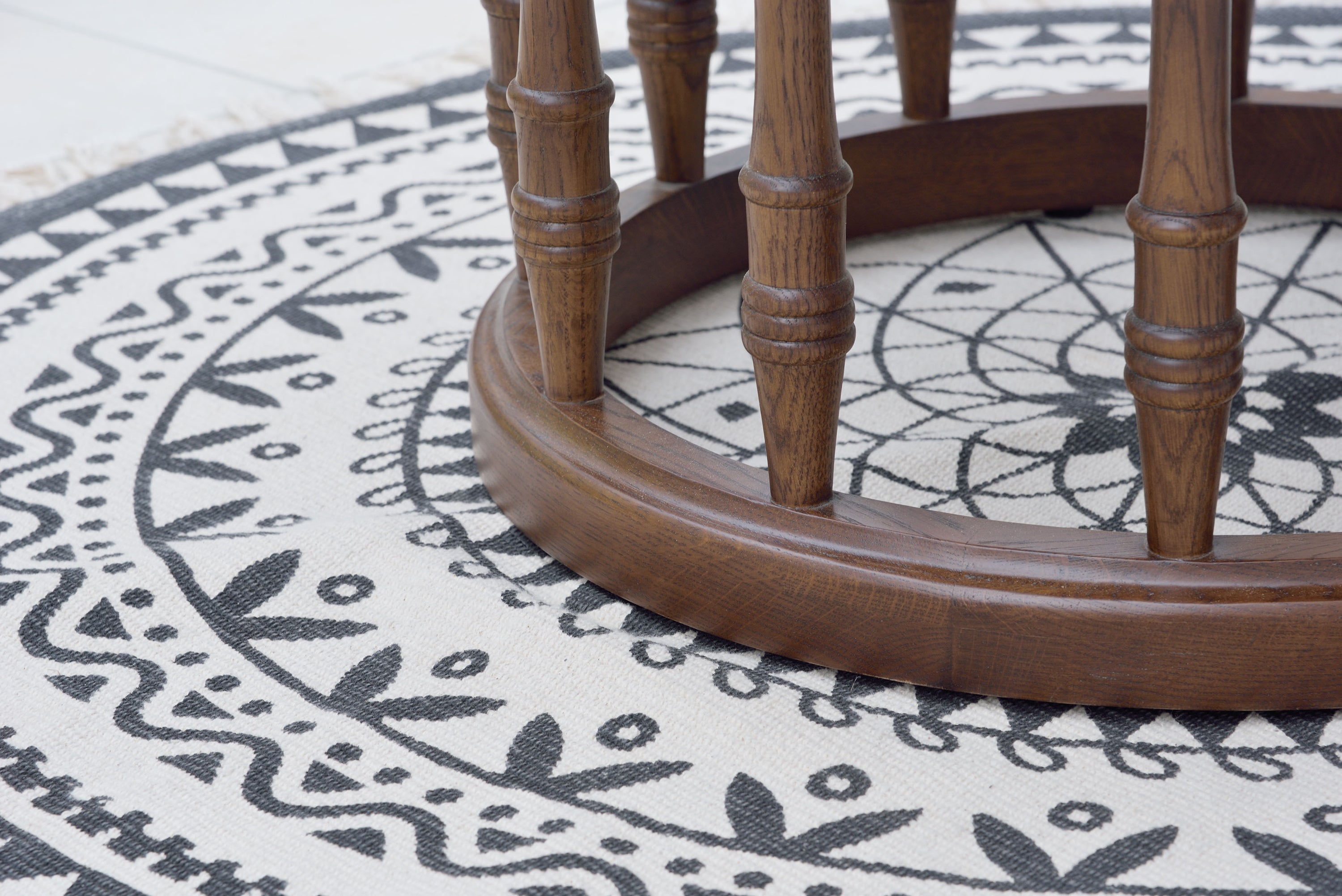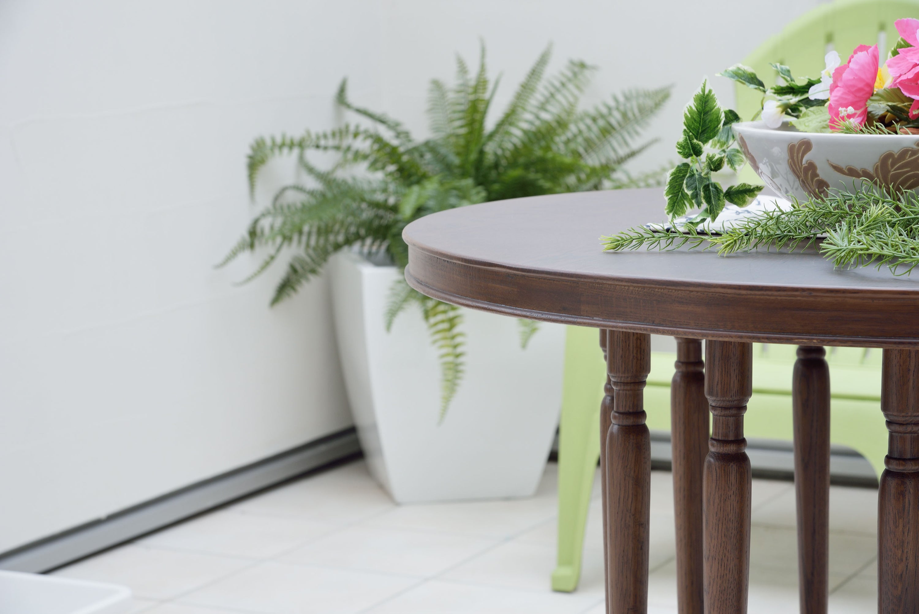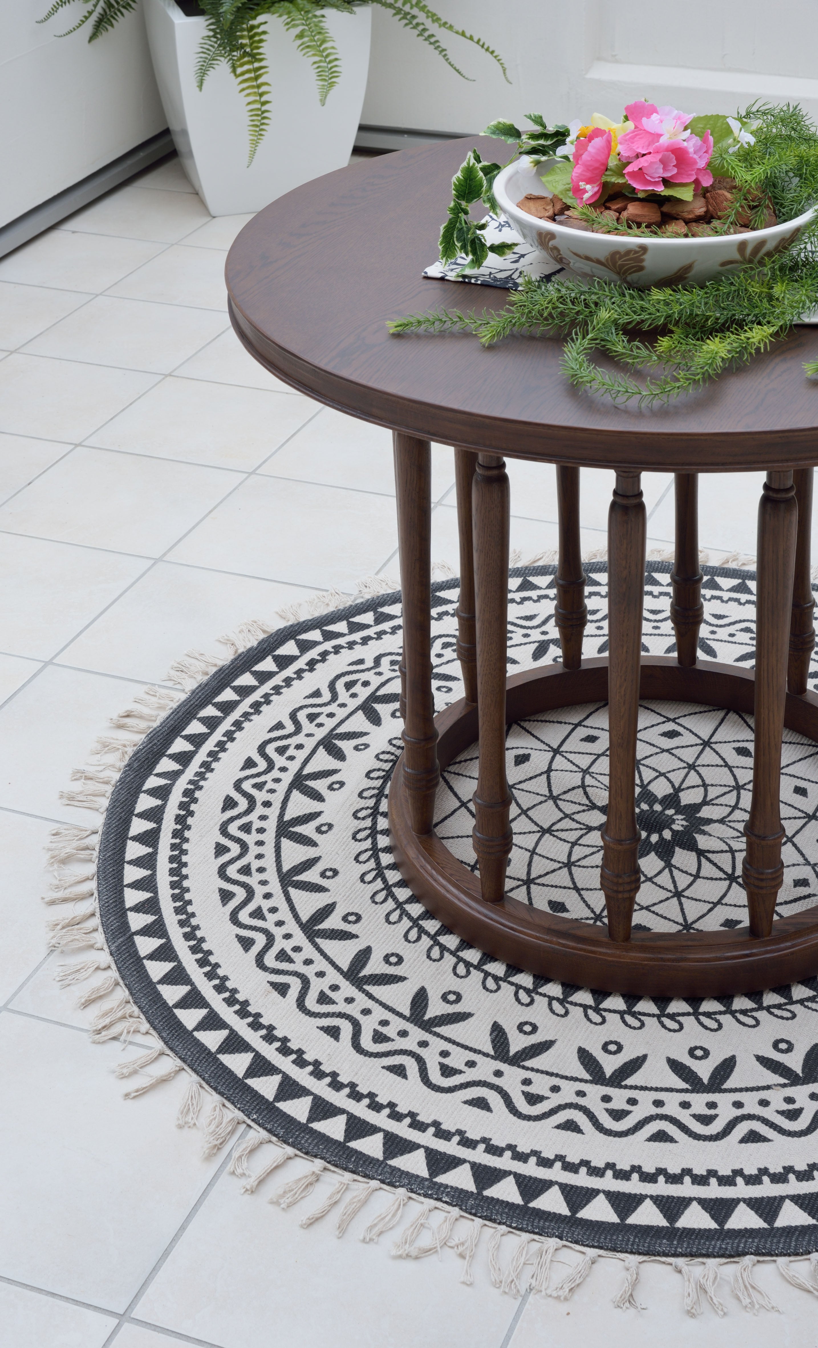 カタチを活かした空間づくり。 ホテルやオフィスの花台として使用するのはもちろん、ご家庭内でダイニングテーブルとしても ご使用いただけます。天板のエッジや装飾彫りが施された脚部が上品な印象を与え、 また、円形にすることでスペースを最小限に抑え、空間を広く見せたい場所に最適です。 天然木を落ち着いたブラウン色で塗装し、暖かみが感じられるテーブルに仕上げました。