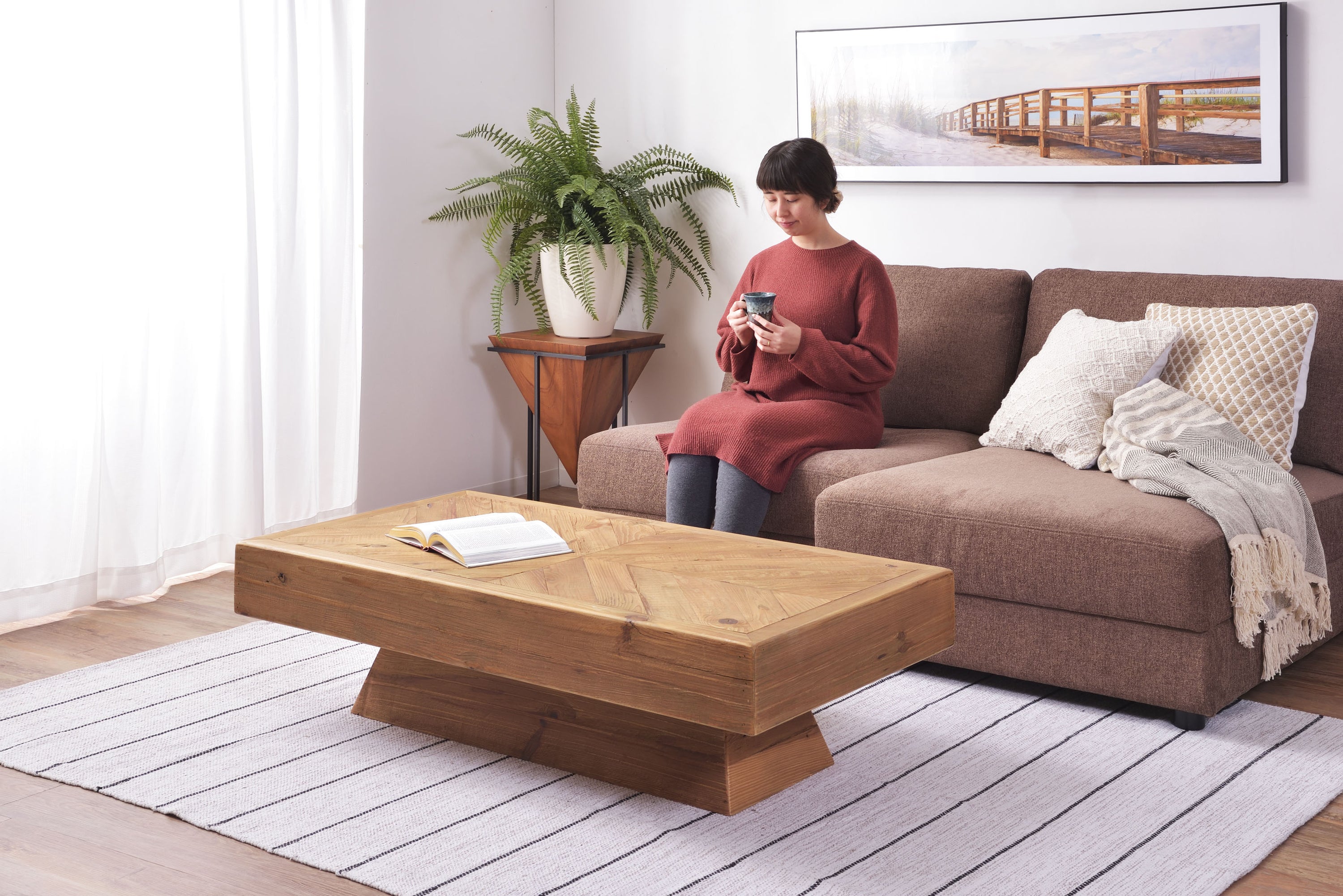 ROOMESSENCEのリビングテーブルブラウンです。安定感のあるつくりを備え、ダイニングや作業台として活躍します。ブランドの美意識を感じる佇まいで、日常づかいから来客時まで幅広く対応。品番:WE-885。暮らしに上質なアクセントを添える一品です。