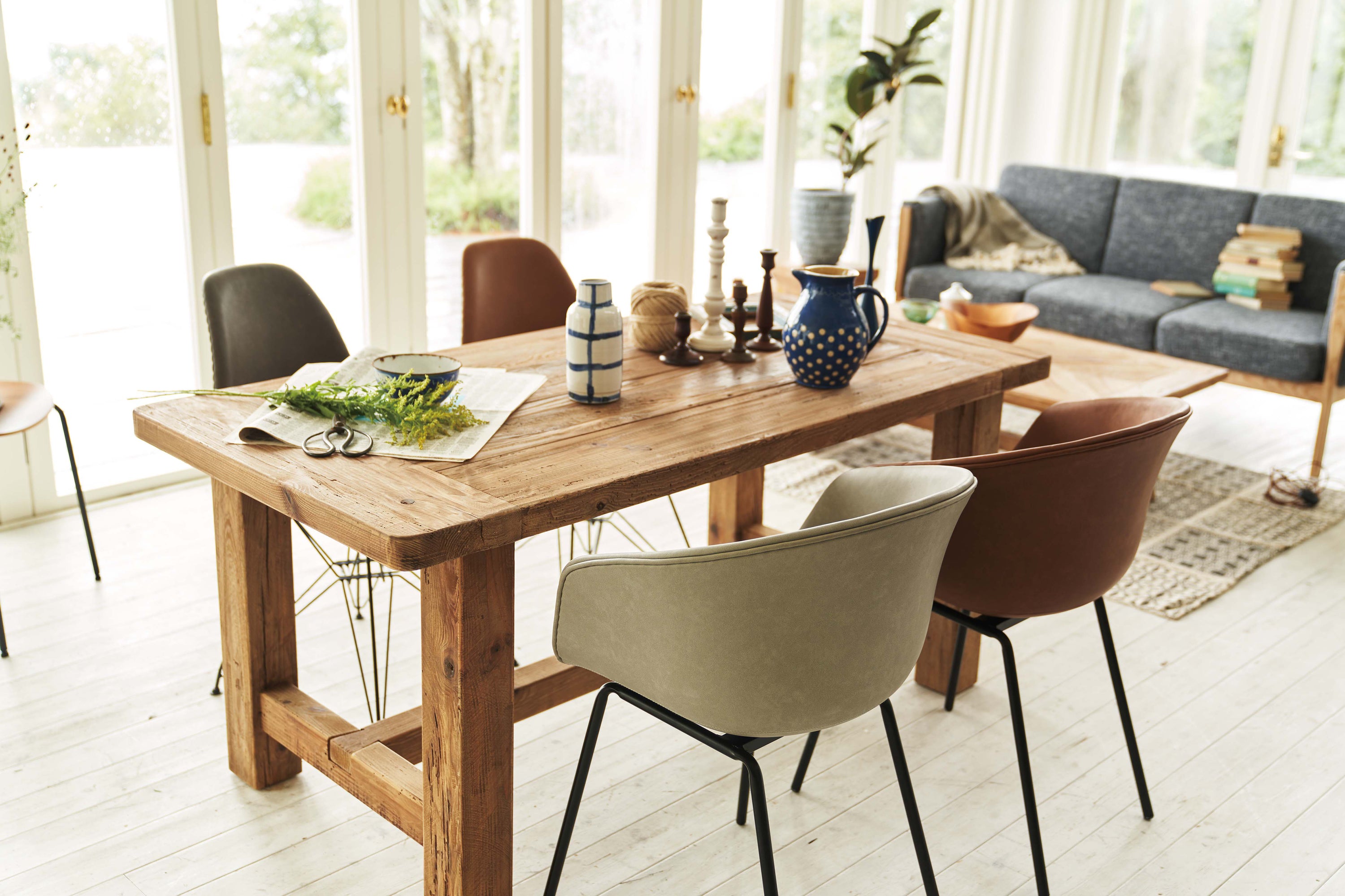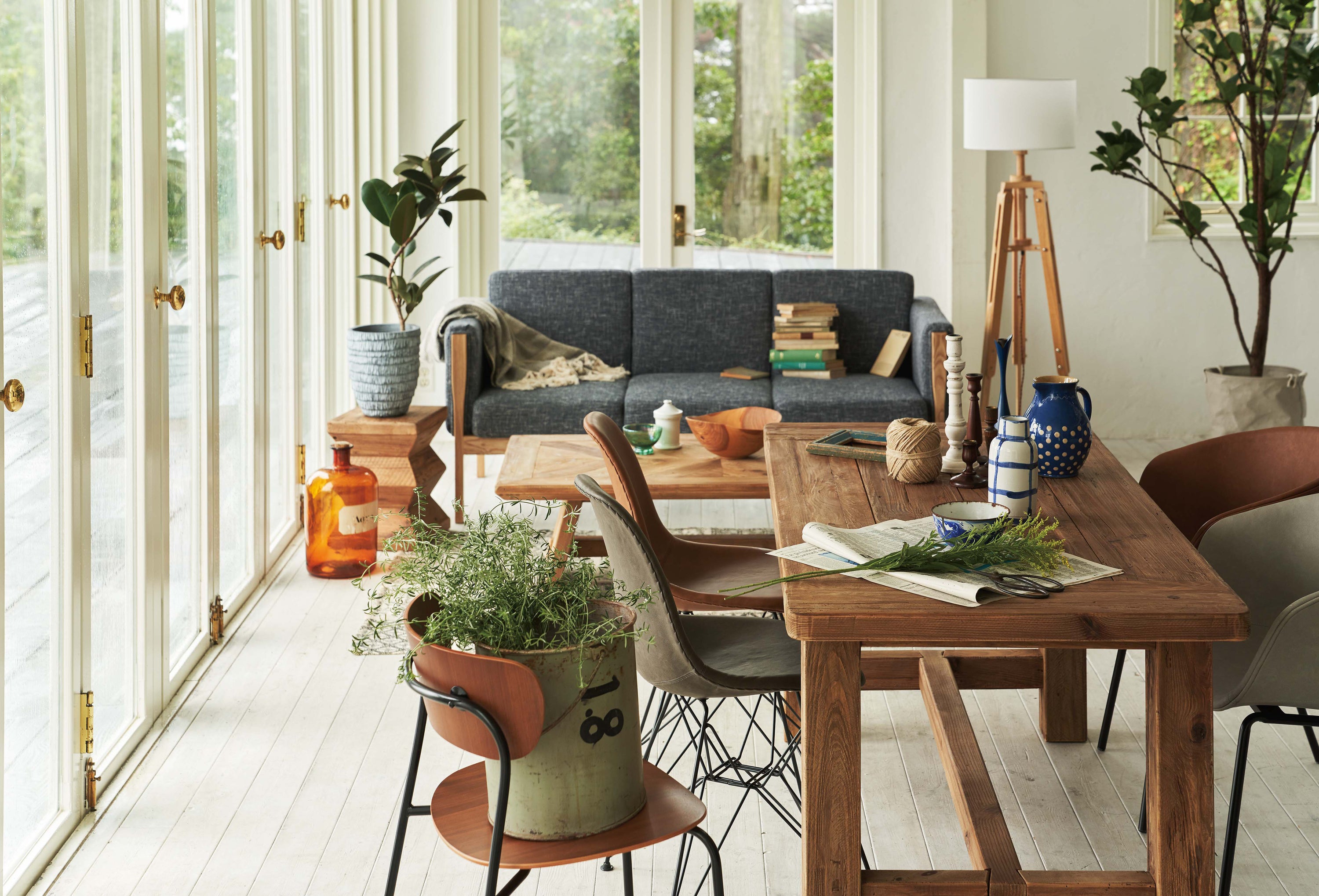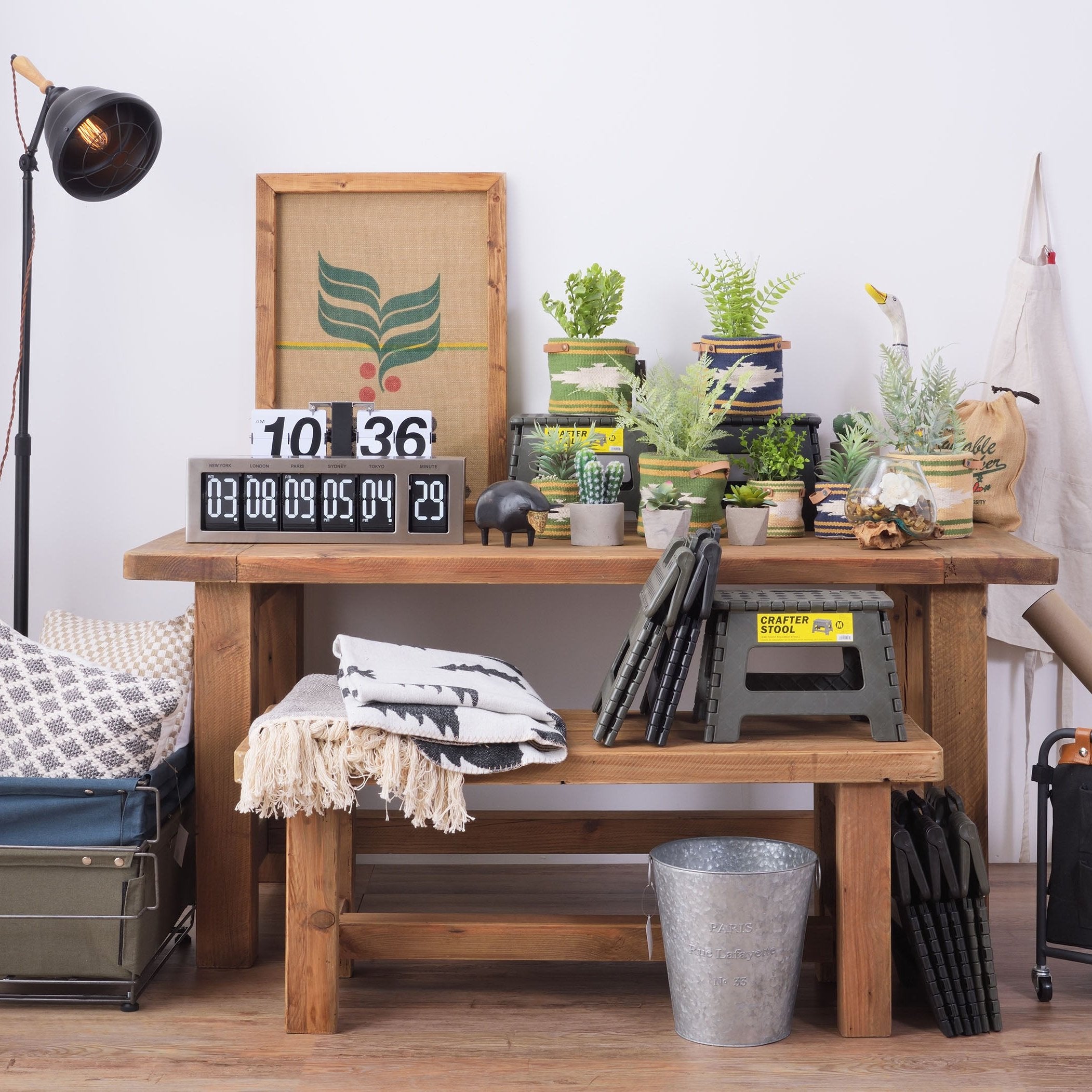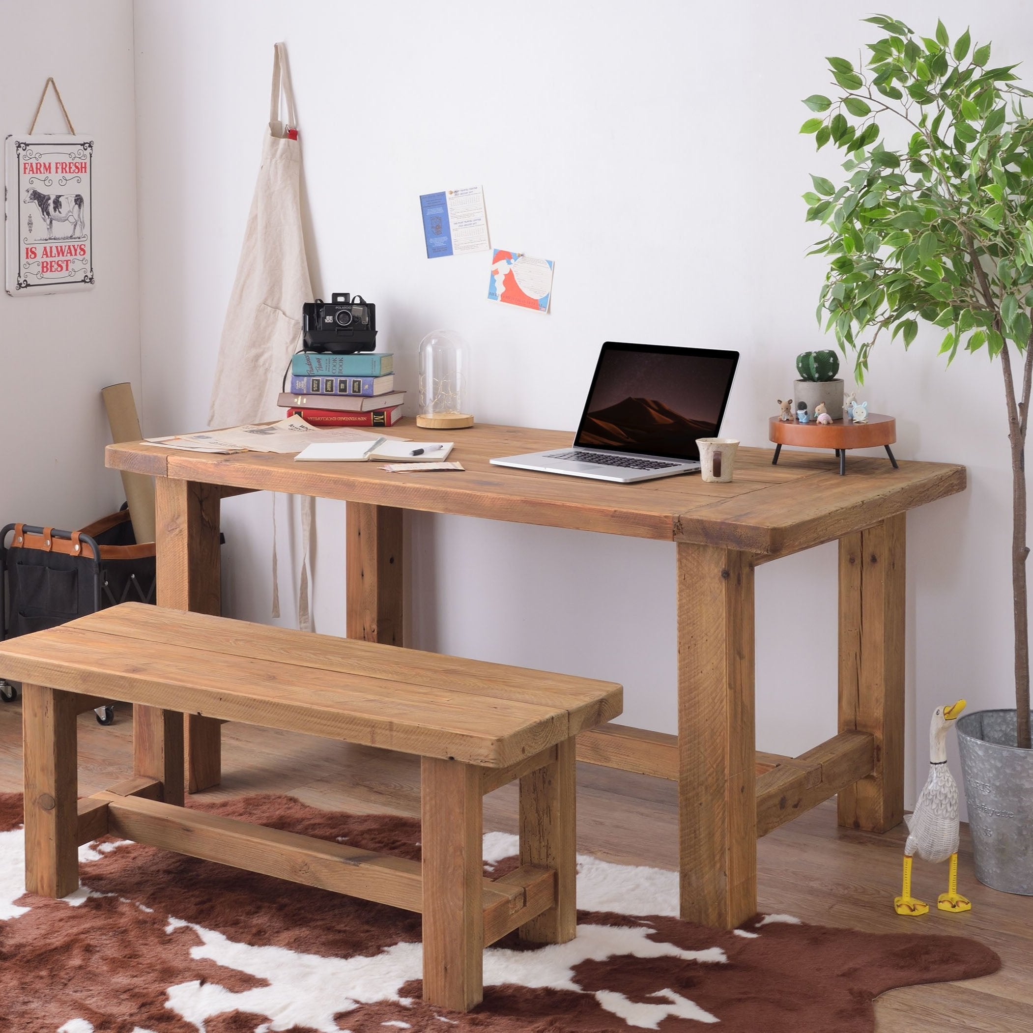 重厚感・重量感のある風合いが魅力的なテーブルとベンチ。 店舗の展示用什器としてや、デザインオフィスでの会議用テーブルとしてなど、独特な魅力ある雰囲気を作り出してくれます。