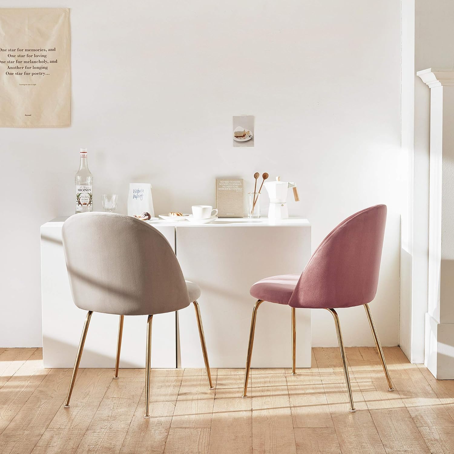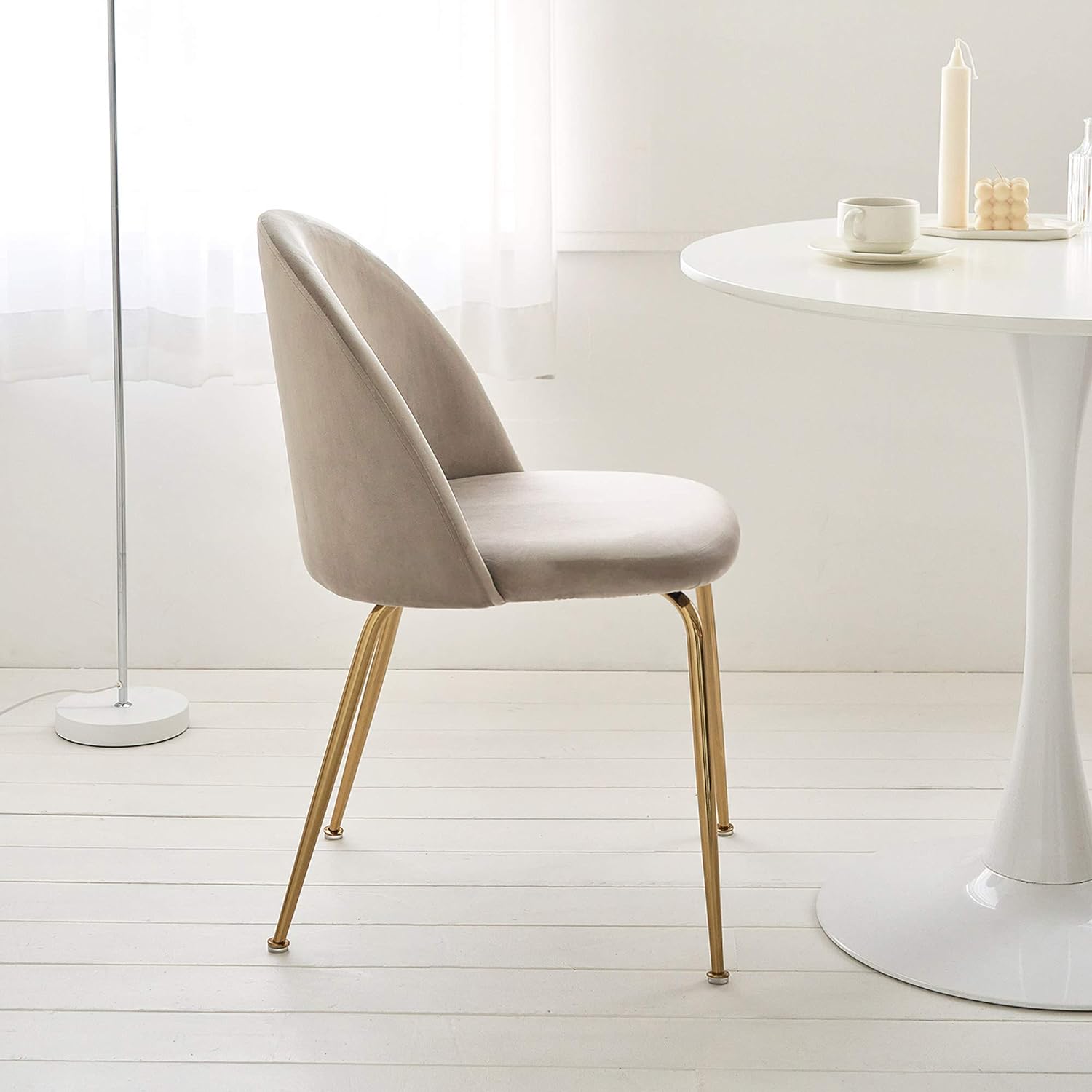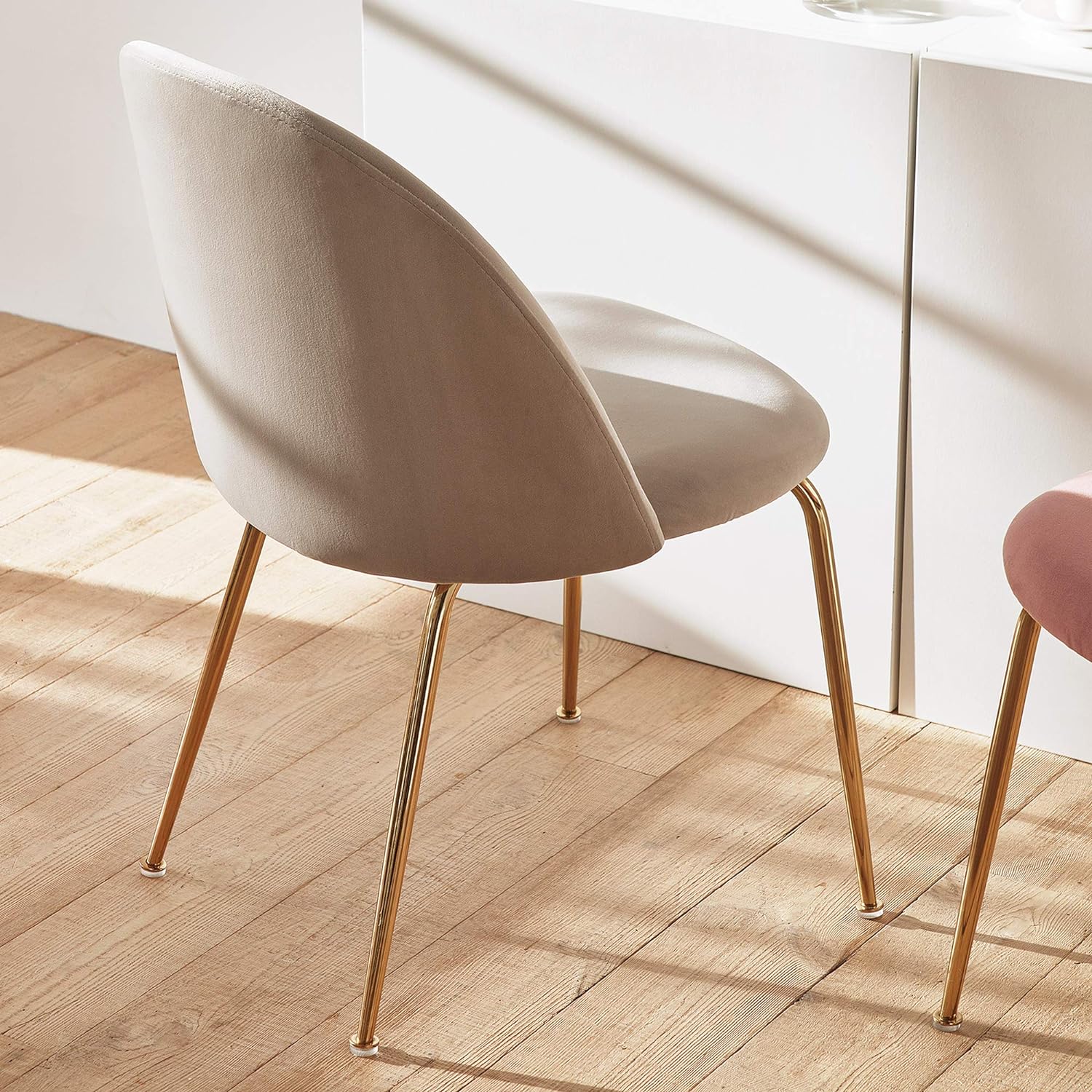 見た目も柔らかいベルベット生地で製作され、モダン且つ高級なデザインのダイニングチェアです。高級鉄材フレームに艶消しコーティング処理ができていて錆と傷に強く長持ちします。広くて柔らかい座面クッションが座った時の安定感を感じさせます。