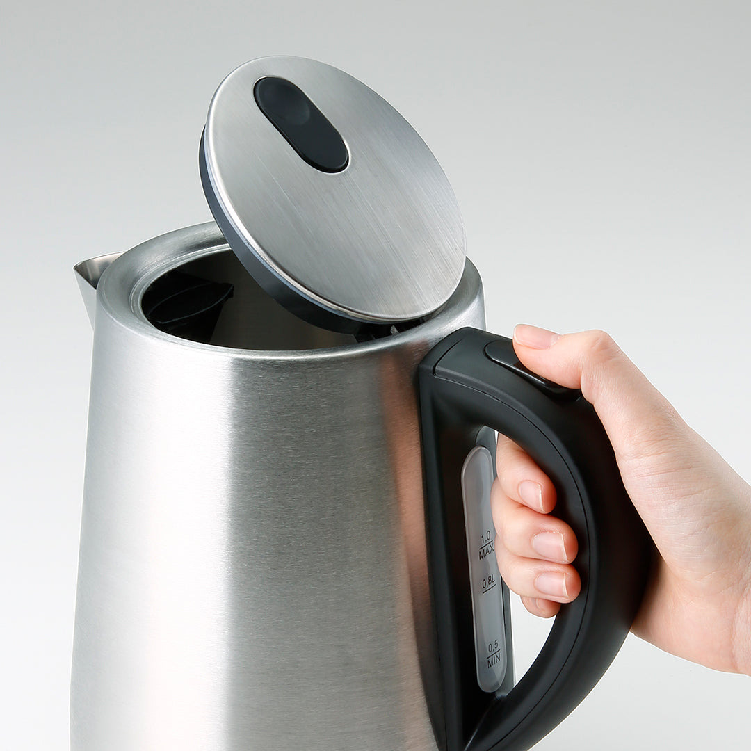 ベーシックなデザインが、心地のよさを感じさせるシンプルな電気ケトルです。片手ワンプッシュでフタが開けられる開閉ボタンが特徴です。パイロットランプで湯沸かしをお知らせされ、オートオフ機能と空焚き防止機能も搭載の安心設計です。