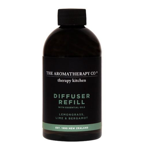 The Aroma Therapy COMPANY - new Therapy Kitchen series (セラピーキッチン)ボディケアからホームフレグランスまで幅広い商品ラインを展開している シリーズです。Essential Oil Diffuser Refill エッセンシャルオイル ディフューザー リフィル(詰め替え用)エッセンシャルオイルだけで香り付けされた 植物性のディフューザーのリフィルオイル。ディフューザーのオイルが少なくなったら、リフィルオイルを足してください。 - フレグランスの種類- ・Lemongrass, Lime & Bergamot レモングラス、ライム&ベルガモットすっきりとした香り。
