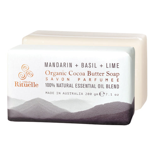 rban Rituelle (アーバン リチュエル)Cocoa Butter Soap(ココアバターソープ)オーガニックココアバターを使用した天然ベジタブルベースのソープ。フレグランスの種類Mandarin,Basil&Limeマンダリン、バジル&ライムマンダリンの優しい甘みにバジルのスパイシーアクセントが加わり優しさを与え、フレッシュなライムのシトラスノートがすきっりとした香り