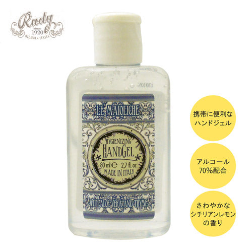 Rudy(ルディ)、Le Maioliche (ル・マヨルカ)マヨルカ焼きの柄を施したシリーズです。Hand Gel (ハンドジェル)・Sicilian Lemon シチリアンレモン-Base note-ベチパー、サンダルウッド、シダーウッド、トンカビーン、ホワイトムスク-Top note-ベルガモット、ホワイティ、レモンピール、グレープフルーツ-Heart note-バーベナ、ジャスミン、ホワイトローズ、プチグレン、トマトリーフ
