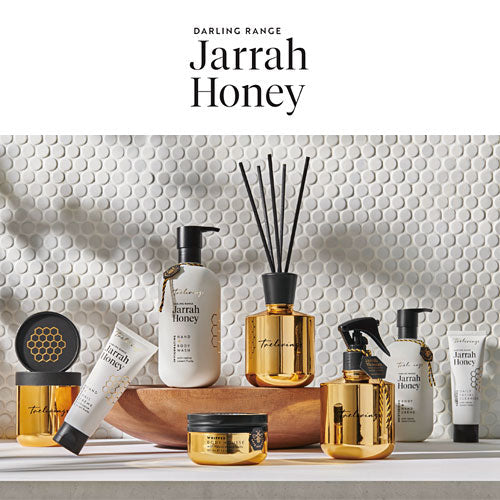 Trelivings(トレリヴィングス)ボディケアブランド。Jarrah Honey ジャラハニーシリーズ西オーストラリア州ダーリング山脈で採取されるハチミツ。フレグランスの種類 -Jarrah Honey ジャラハニーフレグランスはジャラの森に咲く春の花々が色、香り、甘さの 3 重奏として生き生きとはじけるセンセーショナルな香りです。フレグランスルームスプレー