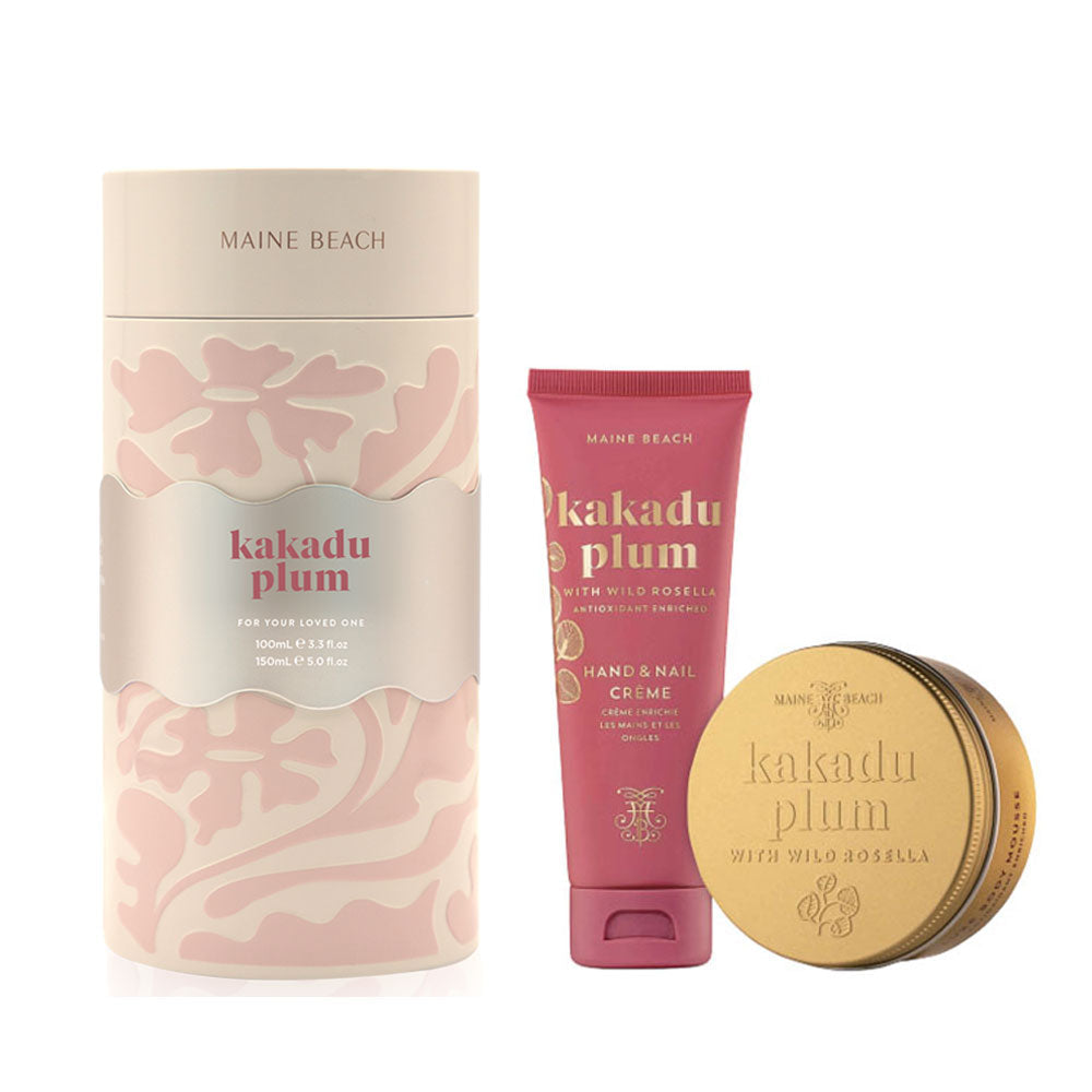 FRAGRANCE- フレグランスの種類 -・KAKADU PLUM SERIES カカドゥプラムカカドゥプラム、ラズベリー、グリーンリーフの香りにグリーンメロンやバニラビーンズをブレンドした香り。ハンド&ネイルクリーム、ボディムースがセットになったギフト BOX。