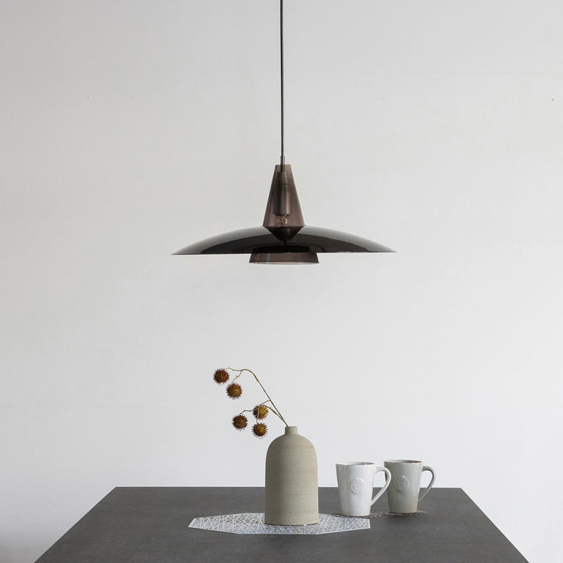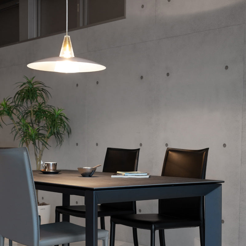 シンプルなフォルムで構成された、デザイン性が高いペンダントライトです。置いた空間をおしゃれに演出してくれます。ダイニングやリビング、オフィスなどにもおすすめのライトです。ダイニングテーブルの上に必要な光を届け、光源を見上げた時の眩さをおさえながらも、料理はより美味しく見えるつくりです。部屋全体に広がる光と影の陰影と、ガラス上部から漏れる光の美しさを、計算して生まれたランプです。