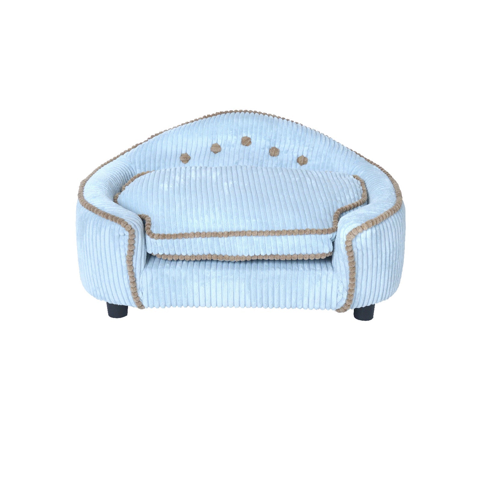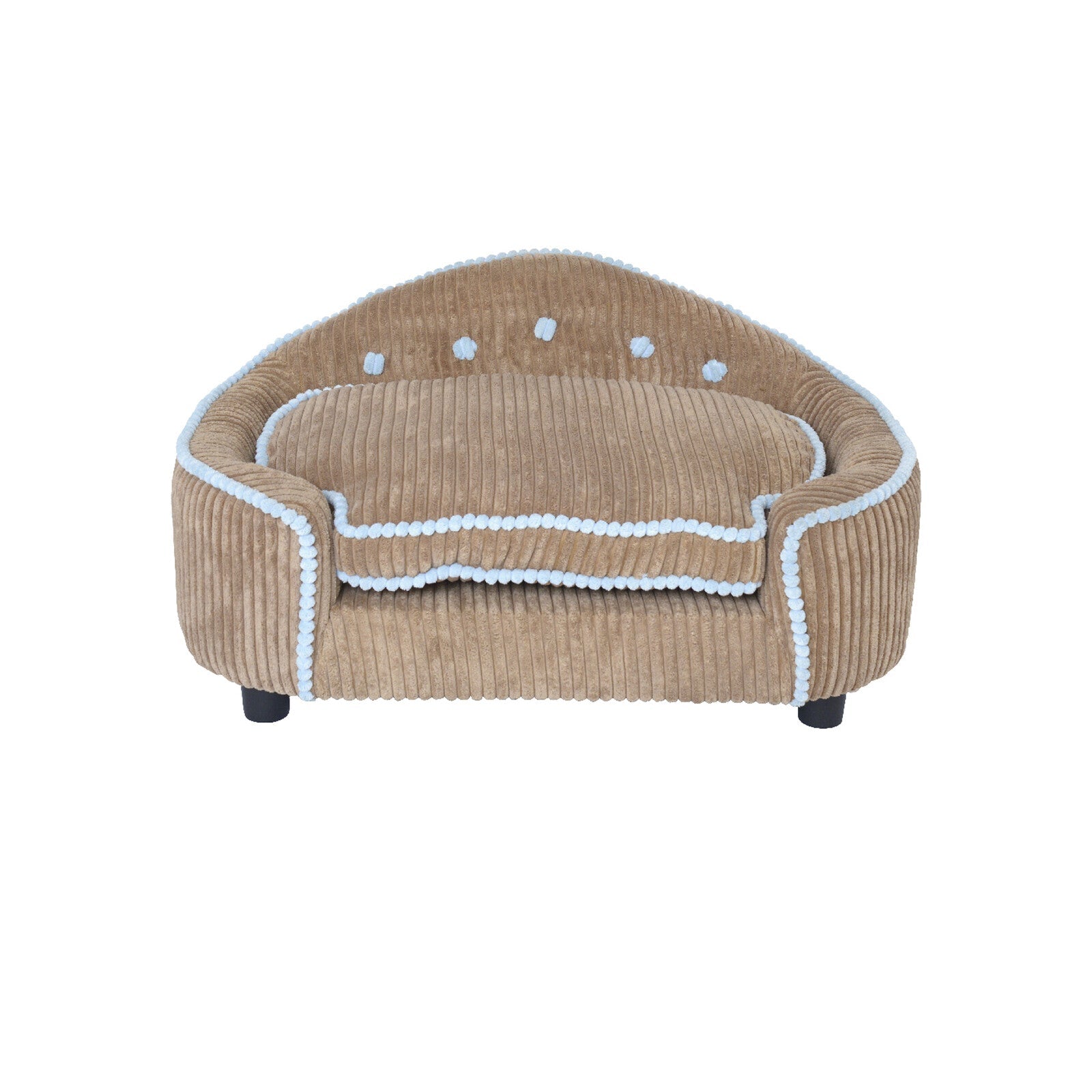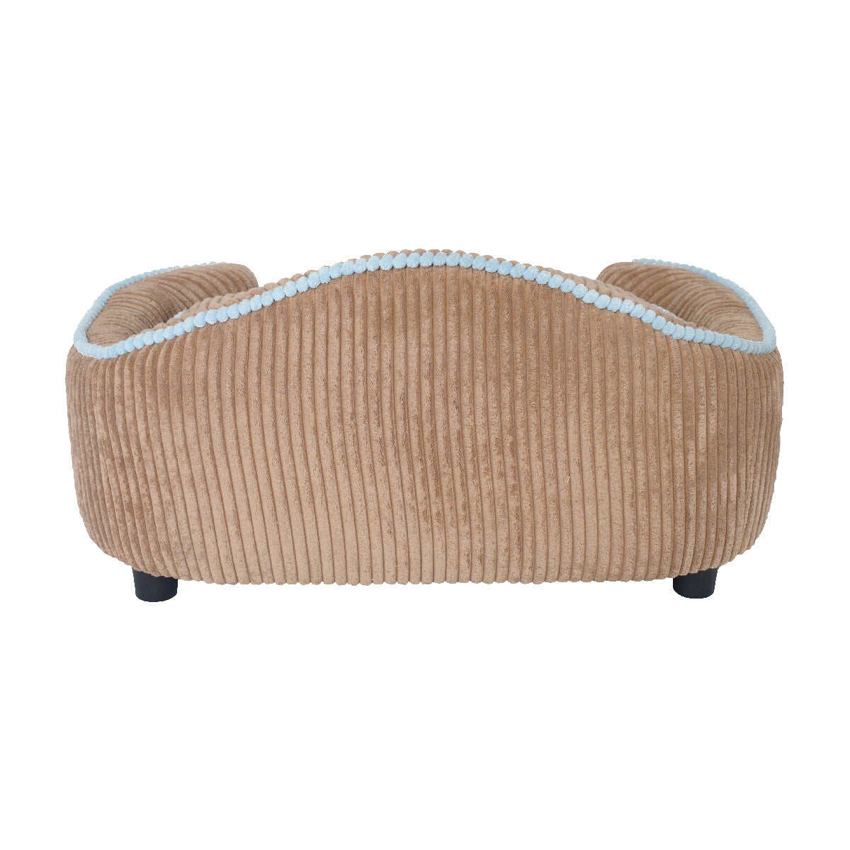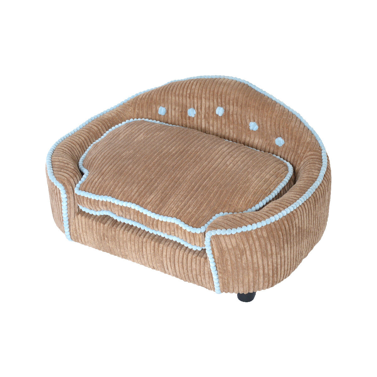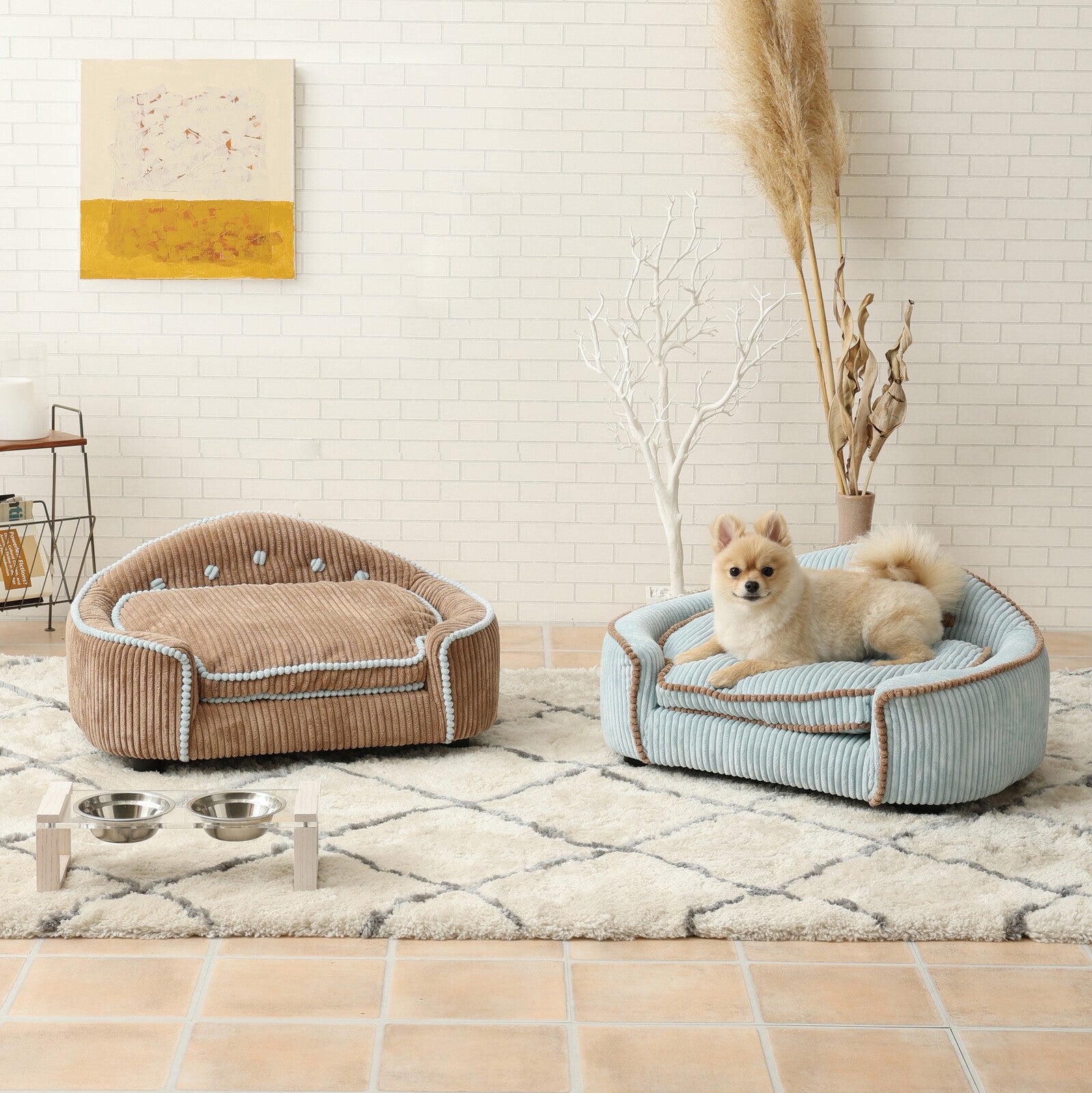 コーデュロイ生地が可愛らしいペットソファです。小型犬や高齢犬など高所が苦手なワンちゃんでも使えるように、脚は取り外すことができるので安心です。気持ちの良いふかふかのクッションで、ぐっすりお昼寝できます。SNS映え間違いなしのペット用ベッドです。