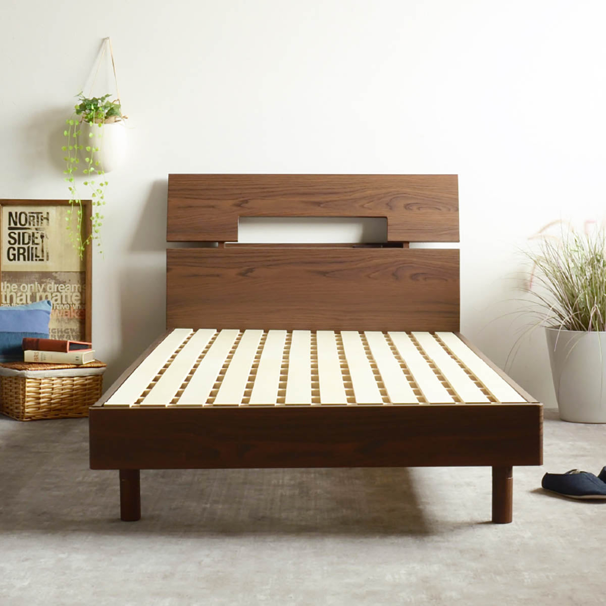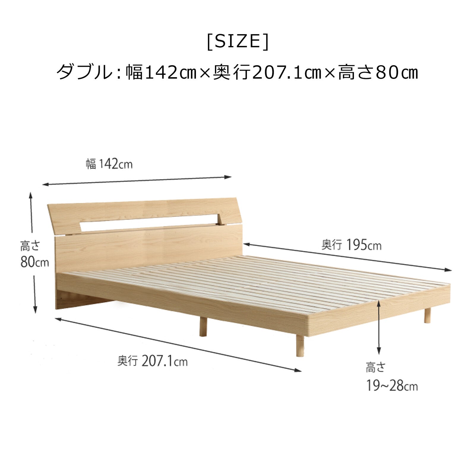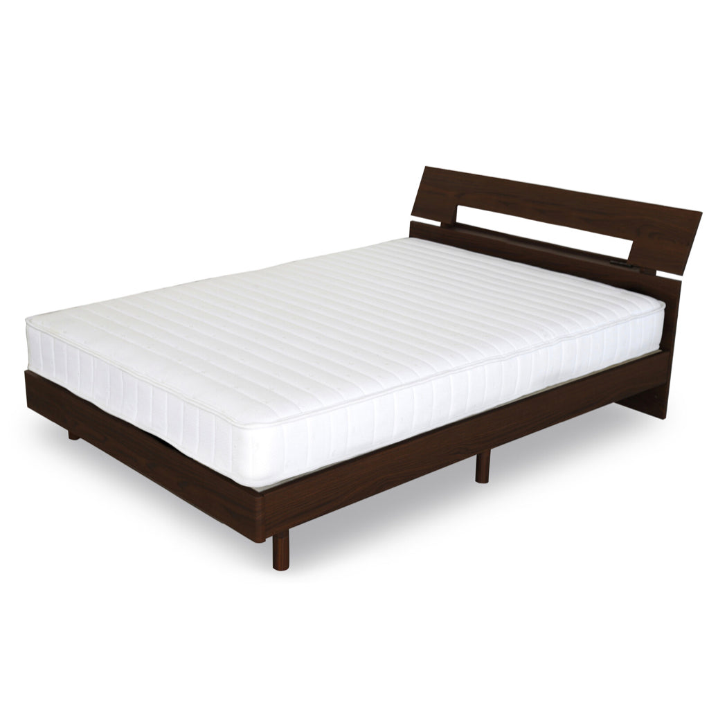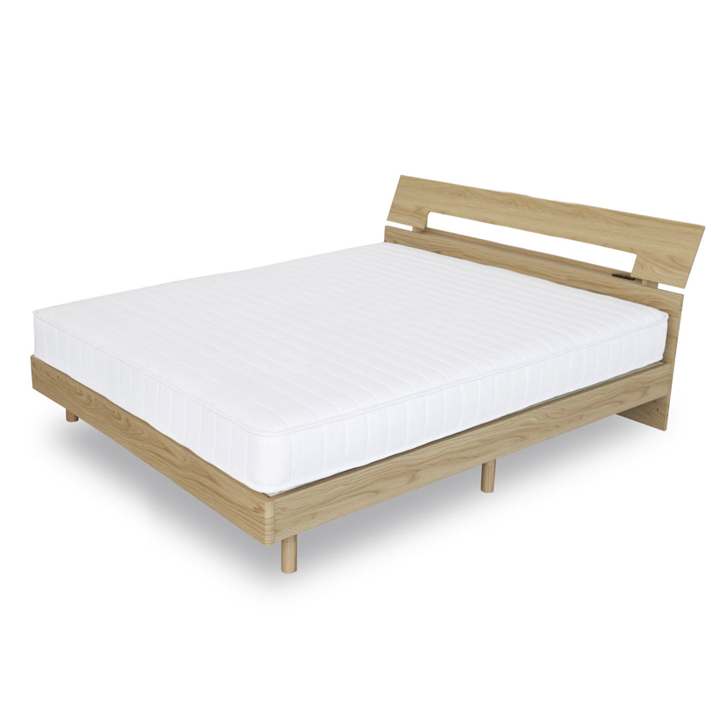 お好みで脚の高さを調節できるチョイ宮付きのベッドです。色はブラウン・ナチュラルの2色、サイズはシングル・セミダブル・ダブルの3展開です。 床面からの高さは19・28cmの2段階から調整可能 ヘッドボードには小物を置くのに丁度いいチョイ宮付き 2口コンセント付きで、枕元でスマートフォンの充電ができます。