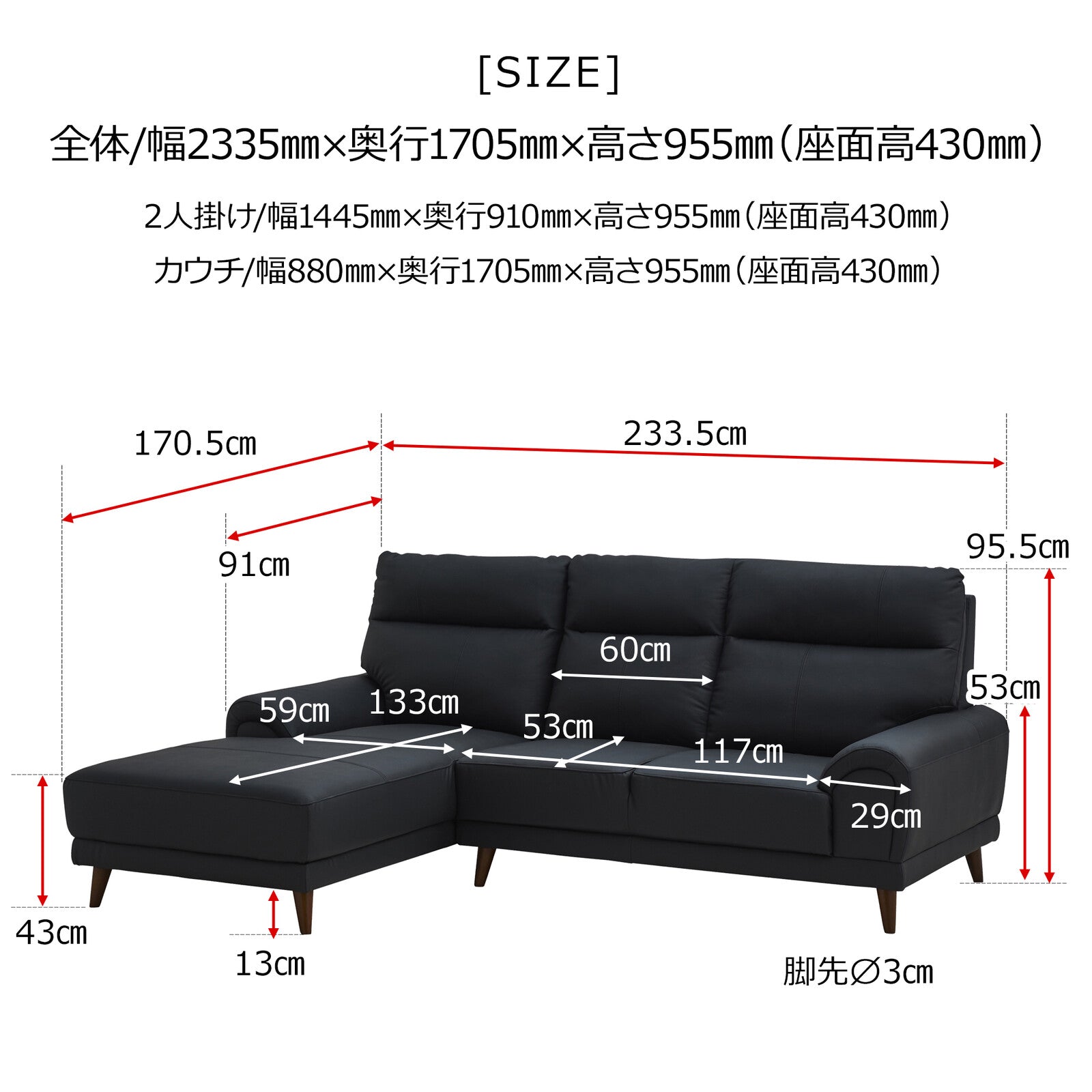 本革を贅沢に使用したカウチソファです。高級感溢れるデザインと快適な座り心地を追求し、日常に特別なリラックス空間を提供します。背もたれハイバック仕様のため、首や頭部をしっかりと支え長時間でも快適にリラックスできます。脚高15cmの為、お掃除ロボットもお使いいただけます