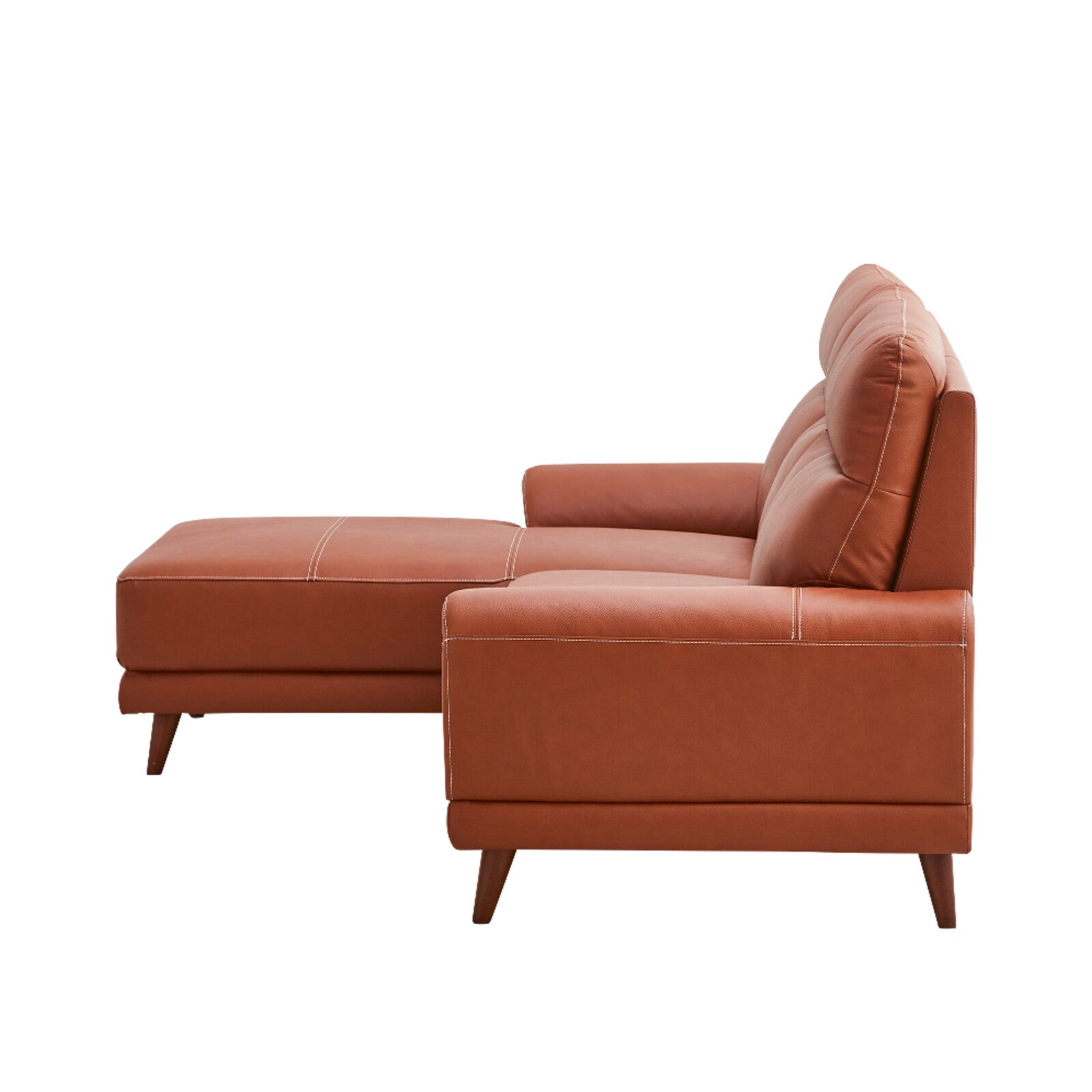 本革を贅沢に使用したカウチソファです。高級感溢れるデザインと快適な座り心地を追求し、日常に特別なリラックス空間を提供します。背もたれハイバック仕様のため、首や頭部をしっかりと支え長時間でも快適にリラックスできます。脚高15cmの為、お掃除ロボットもお使いいただけます
