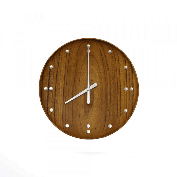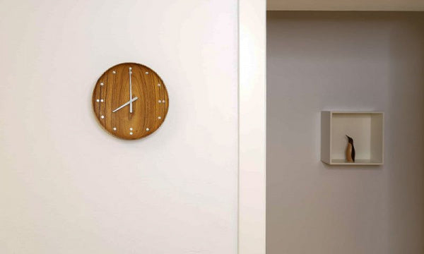 北欧デザインが世界的に脚光を浴び始める重要な時期に、多くの作品を世に送り出し、重要な役割を果たしたと言われるフィン・ユール。世界に名を知られる一番のきっかけとなったと言われているのが、1950~52年に手掛けたニューヨーク国連総合本部ビル、信託統治理事会会議場です。イスやランプ、カーテンから壁板まで空間全てを手がけ、その全体の完成度の高さは彼を一躍有名にしました。その会議場に飾られている、シンプルながらもフィンユールならではの有機的な曲線で一際存在感を放つ時計が、長い年月を経て製品化されました。チークの中でも「本チーク」と称され上質で強靭な耐久性があることで有名なインドネシア産チークを使用。美しい木目はそれぞれ異なる為、世界で一つのだけの風合いがお楽しみいただけます。