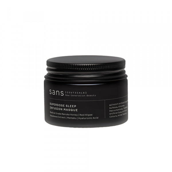 Sansキー成分の一つ、ハイグレードのマヌカハニー、レッドアルゲ、マオリのハーブであるママクとカワカワを配合。さらにビタミンB5をブレンドしたオーバーナイトマスクが、モチモチ吸い付くような健康的な肌へと導きます。【使用方法】適量(大きめのパール1粒大)を手に取り、顔全体と首にマッサージするように優しくなじませます。就寝30分前のご使用がおすすめです。