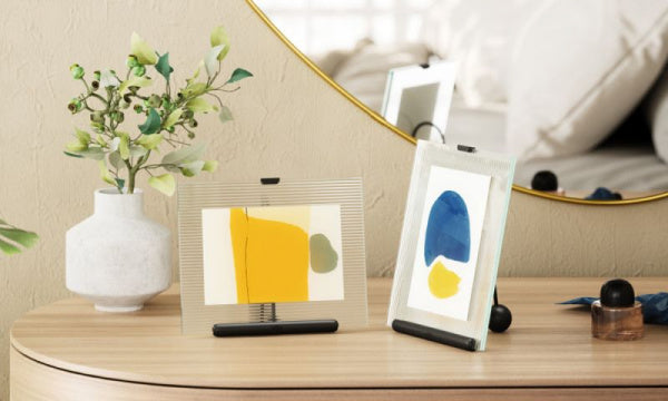 インテリアにスタイリッシュなアクセントを加えてくれる、フレームです。装飾的なイーゼルデザインのこのフレームは、大切な思い出を簡単に飾ることができます。さらに、写真を横向きまたは縦向きに自由に飾ることができます。多目的なデザインで、5×7(2L版)または4×6(KG版)、ポストカードサイズに対応しています。リブ付きガラスの質感がエレガントな雰囲気を醸し出します。お気に入りの瞬間を華やかに飾りましょう。