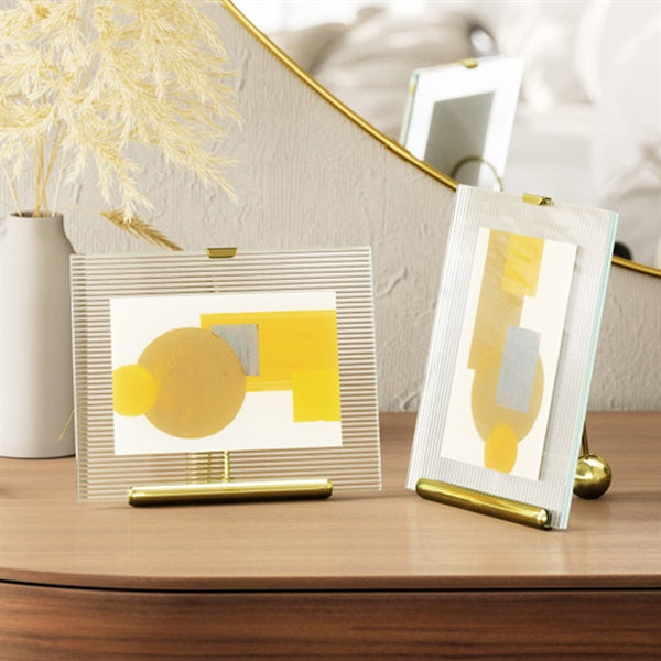インテリアにスタイリッシュなアクセントを加えてくれる、フレームです。装飾的なイーゼルデザインのこのフレームは、大切な思い出を簡単に飾ることができます。さらに、写真を横向きまたは縦向きに自由に飾ることができます。多目的なデザインで、5×7(2L版)または4×6(KG版)、ポストカードサイズに対応しています。リブ付きガラスの質感がエレガントな雰囲気を醸し出します。お気に入りの瞬間を華やかに飾りましょう。