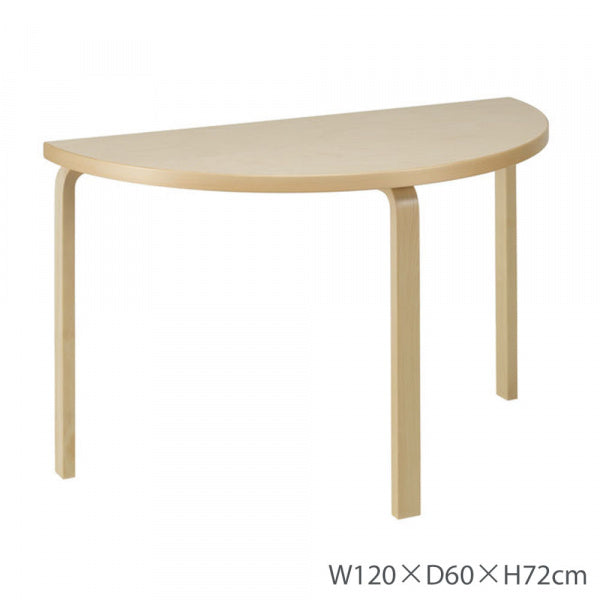長方形テーブルと組み合わせて使ったり、そのまま使う場合は壁に接したデスクとして、様々な使い方ができるアアルトの半円形のテーブル。素材となるフィンランド産のバーチ材は、自然素材ならではの美しさと温かみがあり、年を経るごとに味わいを増していきます【1933年デザイン】※環境保護のため、節や傷のような箇所がある場合がございます。ご使用頂く際には問題ございませんが予めご了承ください。※組立式となり、組立をご希望の場合は別途4950円掛かります。ご注文時の備考欄・ご要望欄に「組立希望」と記載してください。ご注文後にご依頼方法をお伝えいたします。※ガタツキが約2mm以下の場合につきましては、良品として取り扱いをしております。※取り寄せ商品のため、ご注文後のキャンセルはご遠慮ください。※3本脚となりますので、小さなお子様が座ったり、つかまり立ちをさせないようにしてください。※3本脚のため、安定させるために壁につけての使用をおすすめしております。