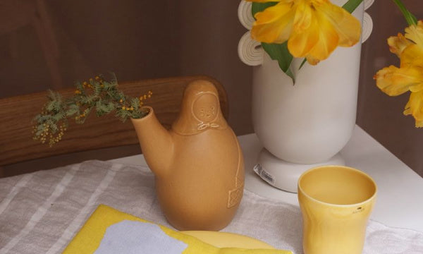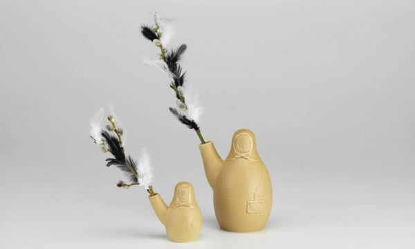 セラミック製の花瓶「イースターウィッチ ベース」は、フィンランドの春の季節の行事、イースターからインスピレーションを受けて製作された2つの製品のうちの1つです。フィンランドに春が訪れる4月、フィンランドの子どもたちが魔女のように着飾り、色とりどりの羽をつけた枝を手にして、冬の終わりを祝福します。小さな魔女たちは、町の家々を訪ねて歩き、それぞれの家に祝福を振りまきながらも、お礼におやつをもらえることを期待しています。町の人々が良い一年を迎えられることを祈り、子どもたちは「Virvon、varvon、tuoreeks terveeks、tulevaks vuodeks; vitsa sulle、palkka mulle」 、「新年が良い年になれ。この枝をあげる代わりにおやつをちょうだい。」と唱えます。アルテックのFIN/JPNフレンドシップコレクションのためにカンパニーがデザインした7つのセラミック製小物シリーズに名を連ねるイースターウィッチベースは、魔女のお供となる犬を象った「イースタードッグ ベース」とペアになる製品です。ハンドメイドでの製のため、形、サイズ、色が個々で異なる場合がございます。