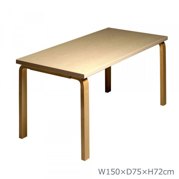 アルヴァ・アアルトデザインのテーブルは、チェア同様素材の持つ温かさが活きています。脚部はチェアと同じムク材と曲げ成型を併用した製法です。ダイニングとして使用する150cmの幅なら、片面に椅子が2脚ゆったりと配置できます。またワーキングデスクとしても便利なサイズです。【1933年デザイン】※環境保護のため、節や傷のような箇所がある場合がございます。ご使用頂く際には問題ございませんが予めご了承ください。※苗木の時からの枝が未成熟のまま内在されて小さな節となる、葉節が天板、脚などにある場合がございますが、ご使用上、安全性には問題がないので、良品となります。※組立式。天板と脚を木ネジで固定し、まく板をハンマーを使って固定します。組立をご希望の場合は別途4950円掛かります。ご注文時の備考欄・ご要望欄に「組立希望」と記載してください。ご注文後にご依頼方法をお伝えいたします。※ガタツキが約2mm以下の場合につきましては、良品として取り扱いをしております。※取り寄せ商品のため、ご注文後のキャンセルはご遠慮ください。