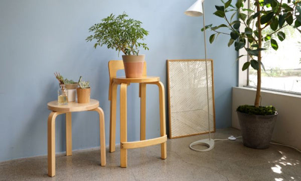 【組立サービスしております。】今なお絶大な人気を誇るスツール60。使い込むほどに深い味わいを醸すバーチ材の温もりと、一切無駄を省いたフォルム、3本脚の美しさが特徴の名作です。【1933年デザイン】
