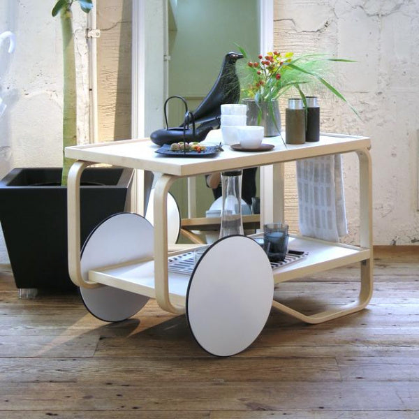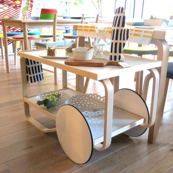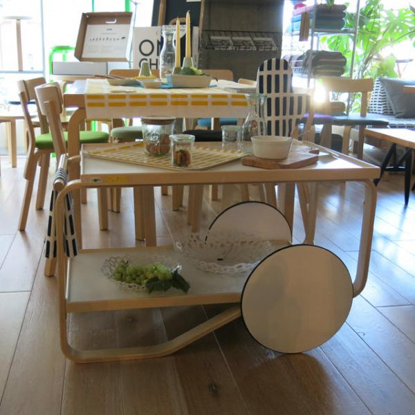 フィンランドの建築家、デザイナーであるアルヴァ・アアルトにより、1936年にデザインされたティートロリー。レストラン「サヴォイ」の建築設計を担ったときにデザインされました。【1936年デザイン】※環境保護のため、節や傷のような箇所がある場合がございます。ご使用頂く際には問題ございませんが予めご了承ください。※取り寄せ商品のため、ご注文後のキャンセルはご遠慮ください。