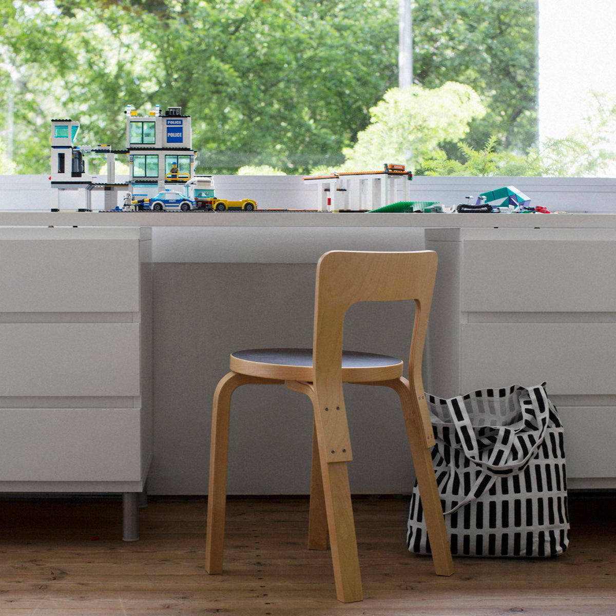 1935年にデザインされた、Alvar Aalto(アルヴァ・アアルト)によるダイニングチェアです。すっきりしたラインとシンプルな構造が特徴的なチェアで、バーチ材の合板によるやや低めの背もたれは、テーブルや机の下に椅子をしまいやすく、さらに人の身体に沿うよう緩やかにカーブを描き、腰掛ける人の背中を優しく受け止めます。