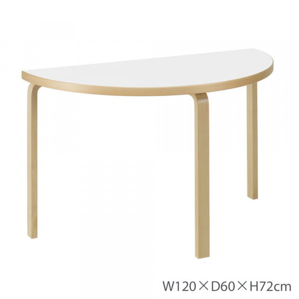 長方形テーブルと組み合わせて使ったり、そのまま使う場合は壁に接したデスクとして、様々な使い方ができるアアルトの半円形のテーブル。素材となるフィンランド産のバーチ材は、自然素材ならではの美しさと温かみがあり、年を経るごとに味わいを増していきます【1933年デザイン】※組立式となります。組立をご希望の場合は別途4950円掛かります。ご注文時の備考欄・ご要望欄に「組立希望」と記載してください。ご注文後にご依頼方法をお伝えいたします。 ※取り寄せ商品のため、ご注文後のキャンセルはご遠慮ください。※3本脚となりますので、小さなお子様が座ったり、つかまり立ちをさせないようにしてください。※3本脚のため、安定させるために壁につけての使用をおすすめしております。