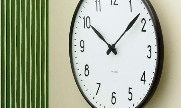 1943年にラウリッツ・クヌーセンとのプロジェクトで製作され、テーブルクロックとして初めて市場に出た幻のヤコブセンデザインが「STATION」と呼ばれる理由。それは当時、手書き風の柔らかなフォントがヨーロッパの主流となり多く使われている中、ヤコブセンはドイツ バウハウスの哲学でもある機能美の流れを組んだデザイン性よりも視認性を重視するフォントを採用し、最もシンプルでどんな空間にも馴染むクロックを発表したことから由来します。このクロックデザインは発表後瞬く間にデンマーク国内へ広がっていくこととなります。ムーブメント:日本製クォーツ。【1943年デザイン】