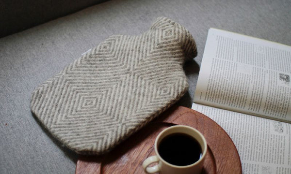 ラプアン カンクリのMARIAポケットショールと同じ生地で作った湯たんぽ。寝る前のお布団にもぐらせておいたり、リビングでクッション代わりに抱えてくつろいだり。じんわりと伝わる、心地いい温かさです。【ご使用方法】首の上部を持ち、本体をまっすぐに立ててお湯を3分の2程度まで注いでください。余分な空気を抜き、キャップを回してしっかりと締めご使用ください。【お手入れ方法】・カバーを取り外します。30℃以下で手洗い、もしくはドライクリーニングしてください。粉末洗剤を使用する場合は、多量の水で溶かしてください。毛布を水に浸してすぐに洗い、優しく絞ってください。こすったり、伸ばしたり、絞ったりしないでください。十分にすすぎ、水をよく絞りだし、半乾きになるまでタオルで挟み、風通しの良い場所で乾燥させてください。湿らせた布をあて、アイロンをかけてください。タンブル乾燥はしないでください。