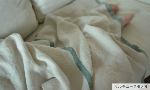緯糸に染められていないリネンを使用し、自然な風合いを楽しめるUSVA(ウスバ)シリーズ。ベージュに映える美しい色合いのラインが印象的です。ウォッシュドリネンのくたっと肌になじむ風合いもお楽しみ頂けます。マルチユースタオルは体をくるっと包み込んで使えるバスタオルとして。またはリビングやオフィスなどでひざ掛けやショールとして使うこともできます。さらに軽くてかさばらないので、アウトドアでもマットやクロスとして大活躍。肌触りの良いリネンだから、そのまま寝転んで昼寝をするにもぴったりです。