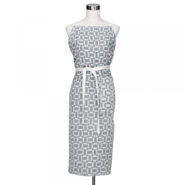リネン100%を使用し、吸水性と速乾性に優れたエプロン。大きなポケットが付いているのでさまざまな家事で活躍します。リネンに含まれるペクチンには汚れが落ちやすい性質があるので、料理や掃除などで汚れてもお洗濯が楽ちん。腰のリボンは前・後どちらで結んでもOK、首元の紐は着る人に合わせて長さを調節できます。男女兼用でどんなコーディネートにも合うスタイリッシュなデザインが魅力です。気分を上げてくれる大胆な幾何学模様とやわらかいカラーのバリエーションは贈り物にもおすすめです。