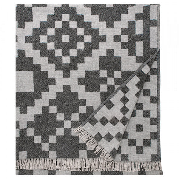 HUVILA ウールブランケット 170×150cm ベージュ×グレー×ブラック