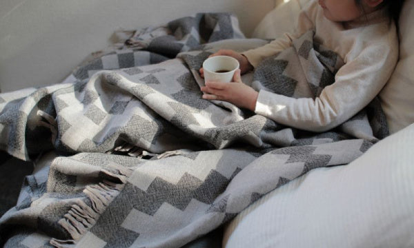 フィンランド語で「別荘」を意味するHUVILA(フヴィラ)。伝統的な織りと印象的なパターン使いは、ゆったりと過ごす別荘のあたたかみのある空間をイメージしてデザインされました。ウールの中でも最高級品と言われるメリノウールを使用しており、軽くてしなやか。さらに肌ざわりも良くウールが苦手な方でも使いやすいブランケットです。ふわっと身体を包み込み、暖かさを逃がさないのが特徴です。ベッドやソファカバーなどインテリアのアクセントとしてもおすすめです。【お手入れ方法】・汚れがひどい場合は洗濯してください。そうでない場合は、屋外で空気に触れさせる程度で大丈夫です。30℃以下で手洗い、もしくはドライクリーニングしてください。粉末洗剤を使用する場合は、多量の水で溶かしてください。毛布を水に浸してすぐに洗い、優しく絞ってください。こすったり、伸ばしたり、絞ったりしないでください。十分にすすぎ、水をよく絞りだし、半乾きになるまでタオルで挟み、風通しの良い場所で乾燥させてください。湿らせた布をあて、アイロンをかけてください。タンブル乾燥はしないでください。