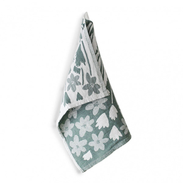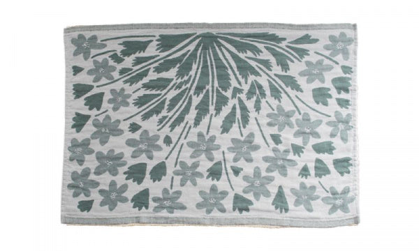 VALKOVUOKKO(ヴァルコヴォッコ) とはフィンランド語で白い二輪草のこと。なかなか春の来ないフィンランドで、一番最初に咲く花と言われる、白くてかわいらしいお花は、ちょうど「母の日の頃に咲く花」と言われ、昔から子どもたちは森や庭で二輪草を摘んで、お母さんにプレゼントしていたそうです。そんな風習を元に、テキスタイルデザイナーの氷室友里さんが描いた二輪草が、一面に散りばめられたタオル。フックにかけるとまるで壁に飾られたブーケやスワッグに見えるよう、デザインされています。コットンとリネンで織られた生地は使い始めからやわらかく、かけた際にはその美しいドレープが華やかさをより一層際立てます。インテリアとして、お部屋に飾っても素敵ですが、手を拭いたり、食器を拭いたりなど水回りで使うと、肌触りだけではないリネンの高い吸水性と撥水性を実感することができます。生花やドライフラワーを贈るような気持ちで、母の日や誕生日、結婚祝いなどにいかがでしょうか。