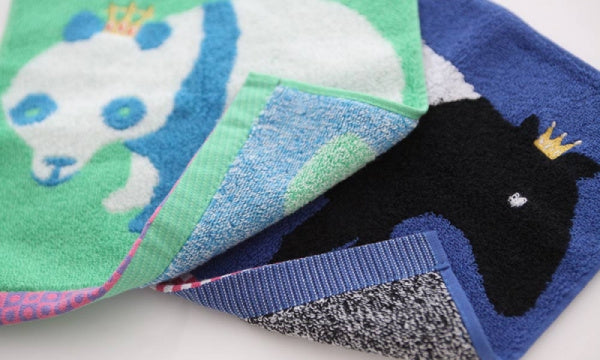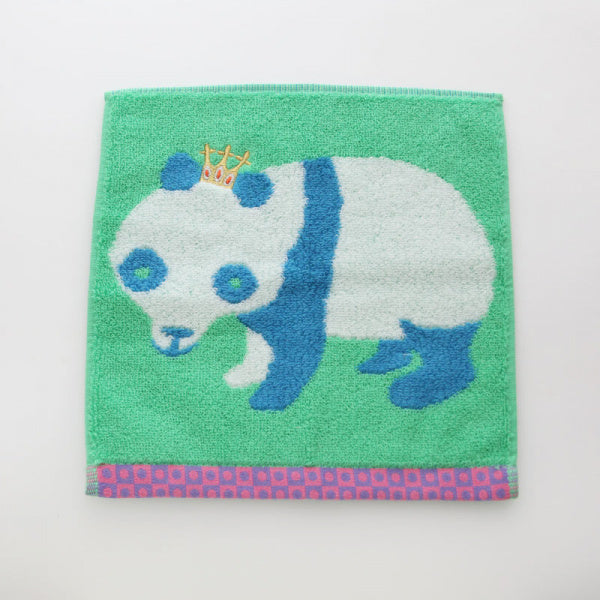 コスチューム・アーティストとして、幅広い分野で活躍するひびのこづえデザインのタオルハンカチです。ユーモラスな動物をアーティスティックなテイストで一枚のハンカチに表現しています。