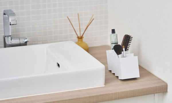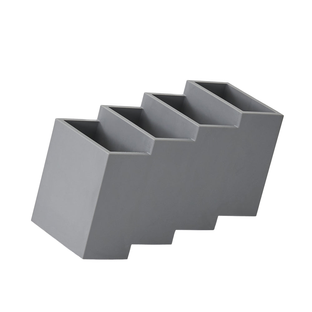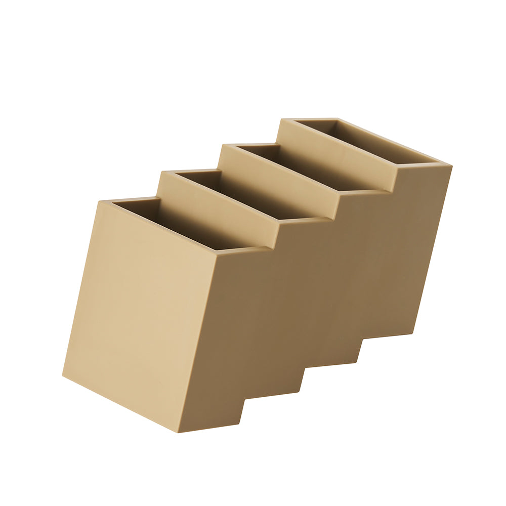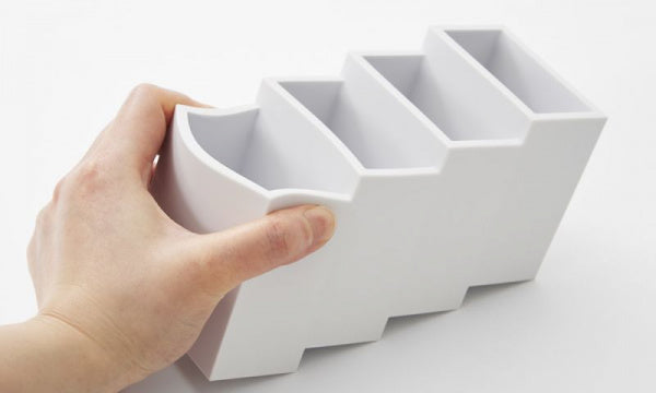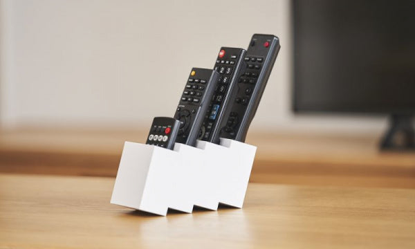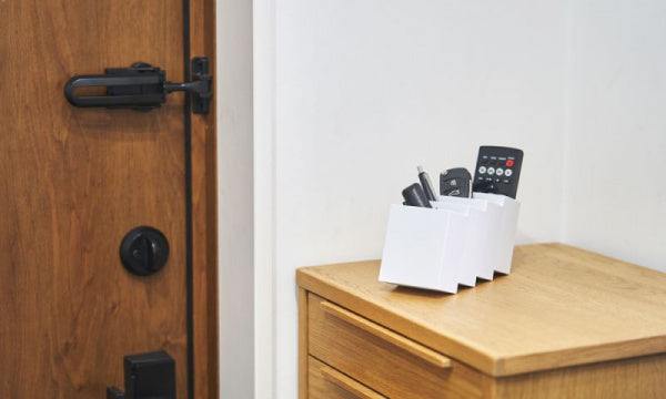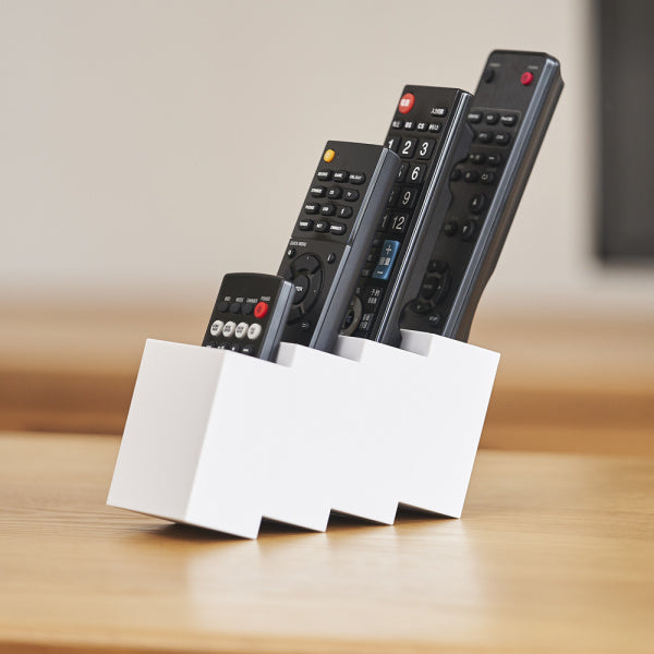 階段のようなフォルムのおかげで、リモコンも見やすく収納できます。また出し入れしやすい形状なのも良い。少し柔らかい素材は、置いた場所を傷つけずリモコンにも優しい。また丸洗いできるのも魅力です。リモコンだけでなく、メガネやステーショナリー、身だしなみセットなどいろんなところで活躍します。