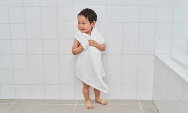 通常のバスタオルでは大きすぎて、フェイスタオルでは物足りない。そんなお悩みを解決する、ちょうどいいサイズのタオルができました。ハンガーに干せる40cm幅で腰にも巻けます。毎日使うものだからこそ干すのもしまうのもコンパクトに。トレーニングやアウトドアにも携帯しやすく、使いやすさにこだわったタオルです。洗濯時にもかさばらないのも嬉しいポイント。2種類のコットンをブレンドした特殊な糸を使用し、ふんわりと肌にやさしい質感で洗濯を繰り返してもボリューム感を損ないません。十分な吸水力を発揮し、コンパクトながらもバスタオルとしてご満足いただける使い心地です。【お手入れのポイント】1、タオルのパイルが開くように多めの水で洗ってください。使い始めは単独での洗濯をおすすめします。2、パイルが抜けたり毛羽が落ちるのを防ぐため、2~3回は柔軟剤なしで洗濯してください。タオルが固くなってきたと感じたら少量の柔軟剤をお使いいただくと効果的です。また、蛍光剤を含む洗剤や柔軟剤は使用しないでください。3、干す際はシワを伸ばすようにバサバサと振り、パイルを立てることでふんわりと乾きます。