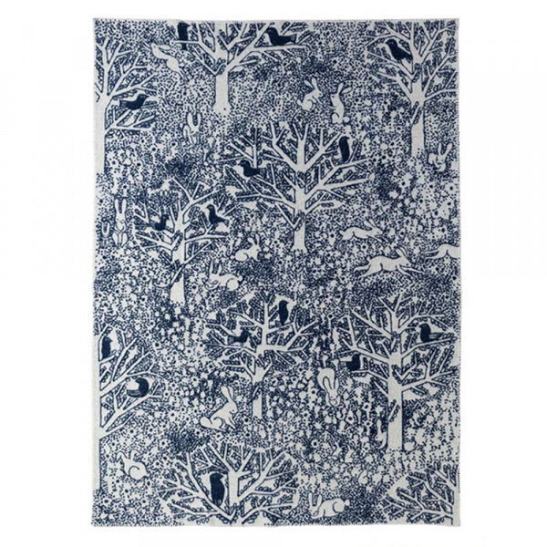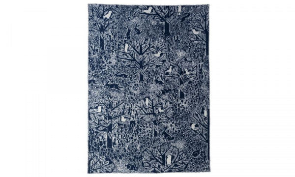ウール シングルブランケット 130×180cm rabbits play birds rest ネイビー