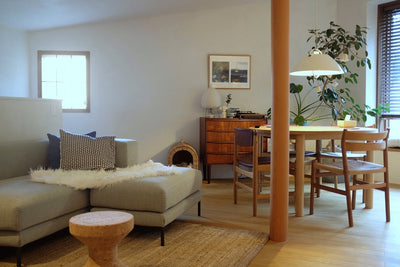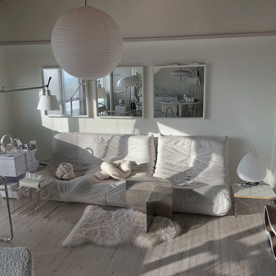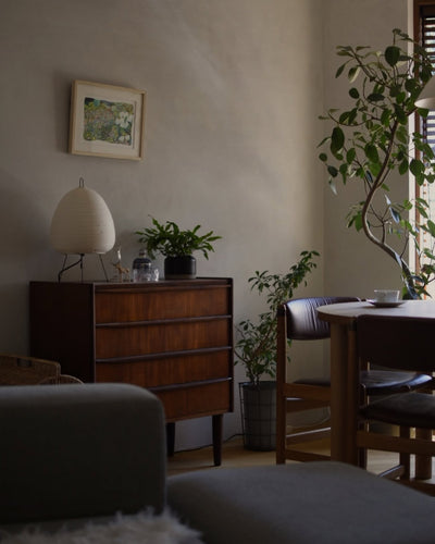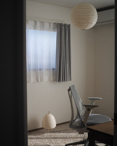 世界でも高い評価を受けている彫刻家、イサム・ノグチ氏の手による光のオブジェ。現代の芸術的感性と日本の伝統を見事に融合させた照明デザインの最高傑作として世界中で愛されています。ぽってりとしたフォルムに、点と点を線でつないだ素朴な柄。どこか懐かしいデザインのスタンドライトです。