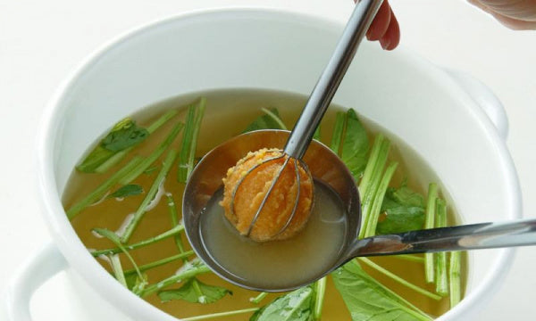 「いつもの味が手軽に作れる」計量みそマドラーです。お味噌に差して、くるっと回すとお味噌をカンタンに計量でき、そのままお鍋で溶かせます。毎日のお味噌汁をカンタンに一定の味付けで作ることができるので、塩分の取りすぎも防げます。卵ときや調味料を混ぜるときにも便利に使えます。収納しやすいコンパクトサイズ。