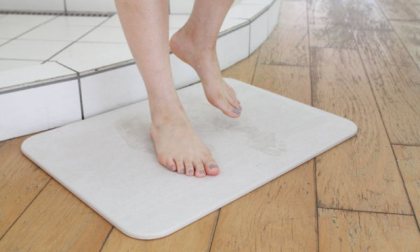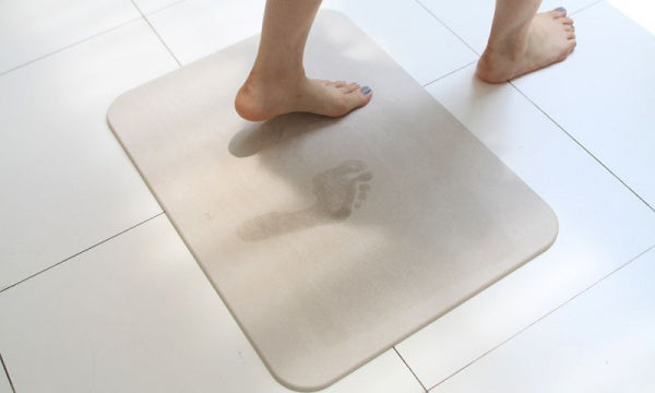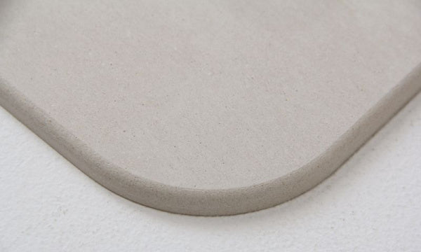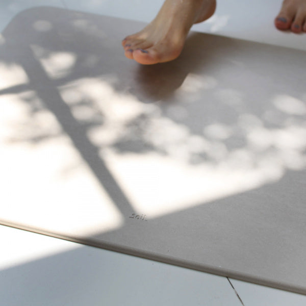soilの珪藻土は、秋田産と石川県能登産を使用しております。「日本珪藻土日用雑貨製造協会」の厳しい検査基準にも適合しており、アスベストの混入や含有は一切ございません。どうか、この機に、安心安全な日本製珪藻土商品をお使いください。吸水性や消臭性に優れた珪藻土を素材にし、日本伝統の左官の技術でつくられたsoil(ソイル)のバスマット。足の裏の水分を素早く吸いとり、時間がたつと自然に乾燥してくれます。皮膚の弱い方にも安心してお使いいただくことができます。【日本珪藻土 日用雑貨製造協会 認定商品】珪藻土:植物プランクトン類の化石、珪藻殻の堆積物によって形成された地層。マイクロメートル単位の微細な孔が無数にある多孔質構造の特性を持っているため、保湿材だけではなく、ろ過助材、吸収材等に利用されています。 ・ロゴ面をオモテにしてご使用ください。・吸水力が落ちた場合は、紙ヤスリなどでうすくこすると回復します。