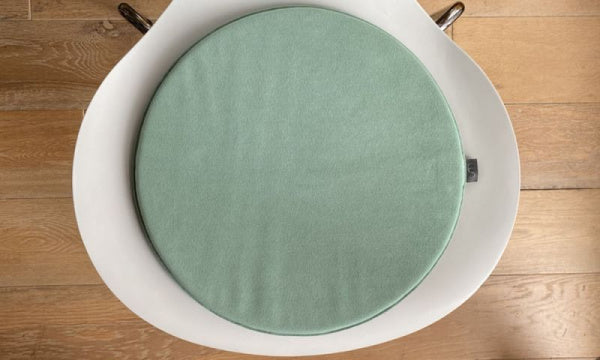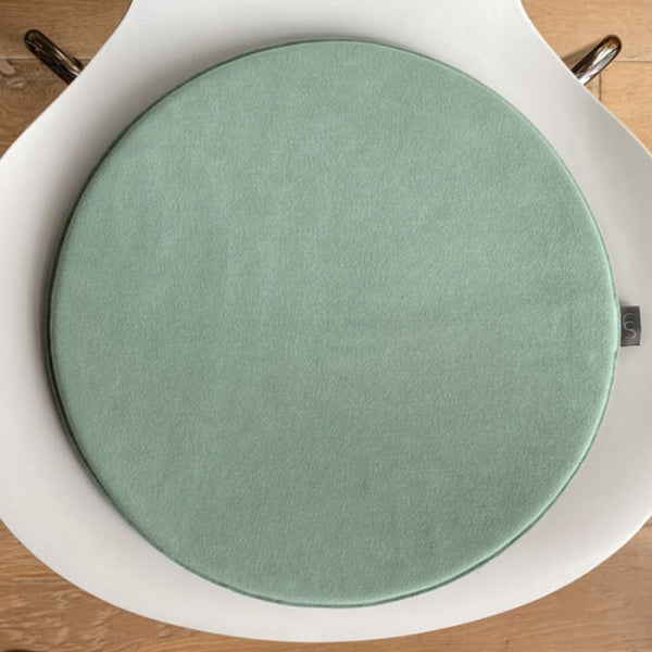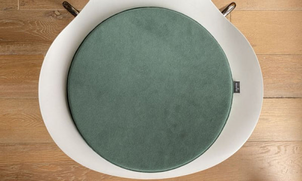 セブンチェア、イームズチェア、アルテックチェアなど全てのデザインチェア、ベンチにフィットする、センプレオリジナルのチェアクッションです。裏表と色違いのウルトラスエード(スエード調人工皮革)を使用しているので、しっとりとした肌触りが心地よく、耐久性などがとても優れています。中材には高密度ウレタンを使用し、置くだけで快適な座り心地を実現します。「MOSS/モス」:苔、苔色、グレイッシュなグリーン色。落ち着いた色合いはどんな空間にも合わせやすく、場所を選びません。