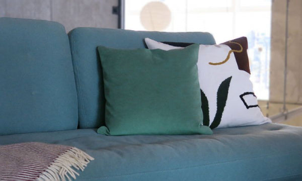 センプレオリジナルのクッションカバーです。裏表と色違いのウルトラスエード(スエード調人工皮革)を使用しているので、しっとりとした肌触りが心地よく、耐久性などがとても優れています。「MOSS/モス」:苔、苔色、グレイッシュなグリーン色。落ち着いた色合いはどんな空間にも合わせやすく、場所を選びません。