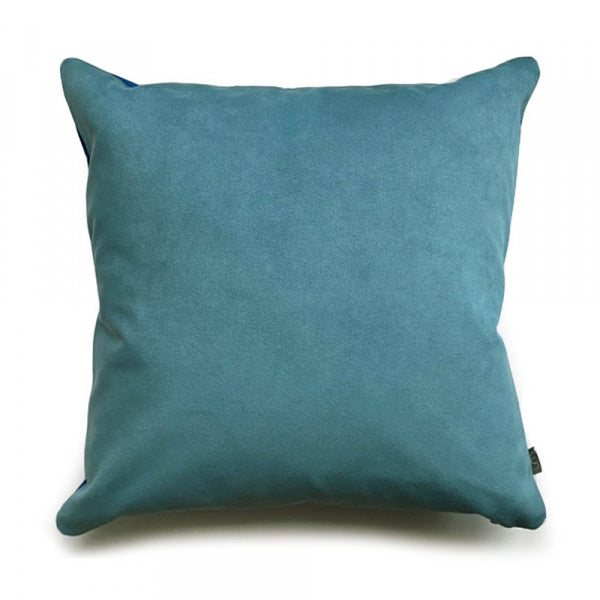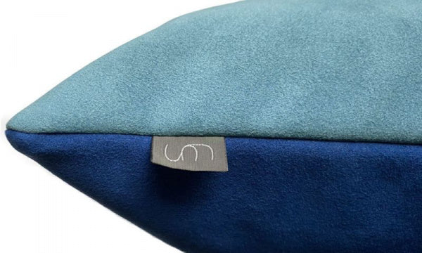 センプレオリジナルのクッションカバーです。裏表と色違いのウルトラスエード(スエード調人工皮革)を使用しているので、しっとりとした肌触りが心地よく、耐久性などがとても優れています。「AQUA」:水、潤いのある、清々しい、開放的で爽やかな印象。壮大な自然のイメージで心地のよいカラートーン。
