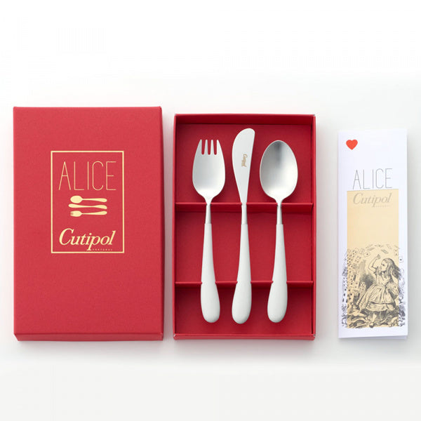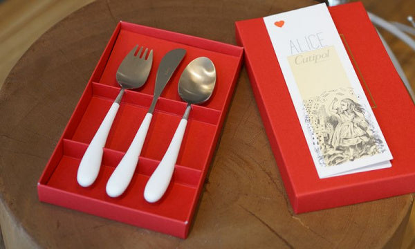 ギフトボックスに入った、子供用カトラリーセット。ナイフは鋭くなく、オムレツやハンバーグをカットする程度のものでバターやジャムを塗るのにも適しています。5、6歳程度のお子様から使用することを想定した商品である一方 作りは従来製品と同じく高品質なものであり、大人の方もカジュアルにご使用いただけます。金属部の質感、柄の色合いともにGOAシリーズと共通なので、ご家族全員でカトラリーをお揃いにできることもポイント。入学式、七五三など、節目でのプレゼントにも喜ばれそうです。※本製品はナイフ、フォーク、スプーンがアリスギフトボックスに入ったセットとなります。