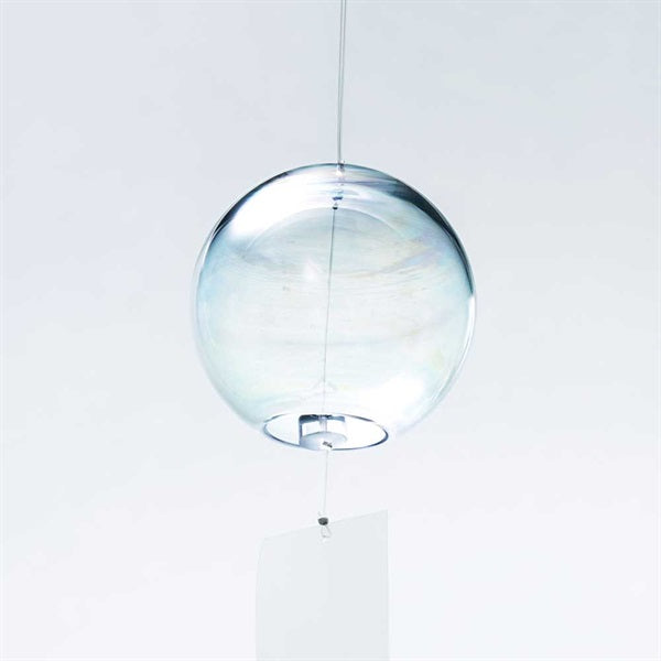 しゃぼん玉をモチーフにした虹色風鈴です。ガラスに特殊な加工を施し、まるでシャボン玉がつるされているかのように見えます。見た目も美しく、風に揺られて鳴る音色はとても心地よく涼しさを与えてくれます。桐箱にお入れいたします。※手作り商品のため色味や形に個体差がございます。予めご了承ください。